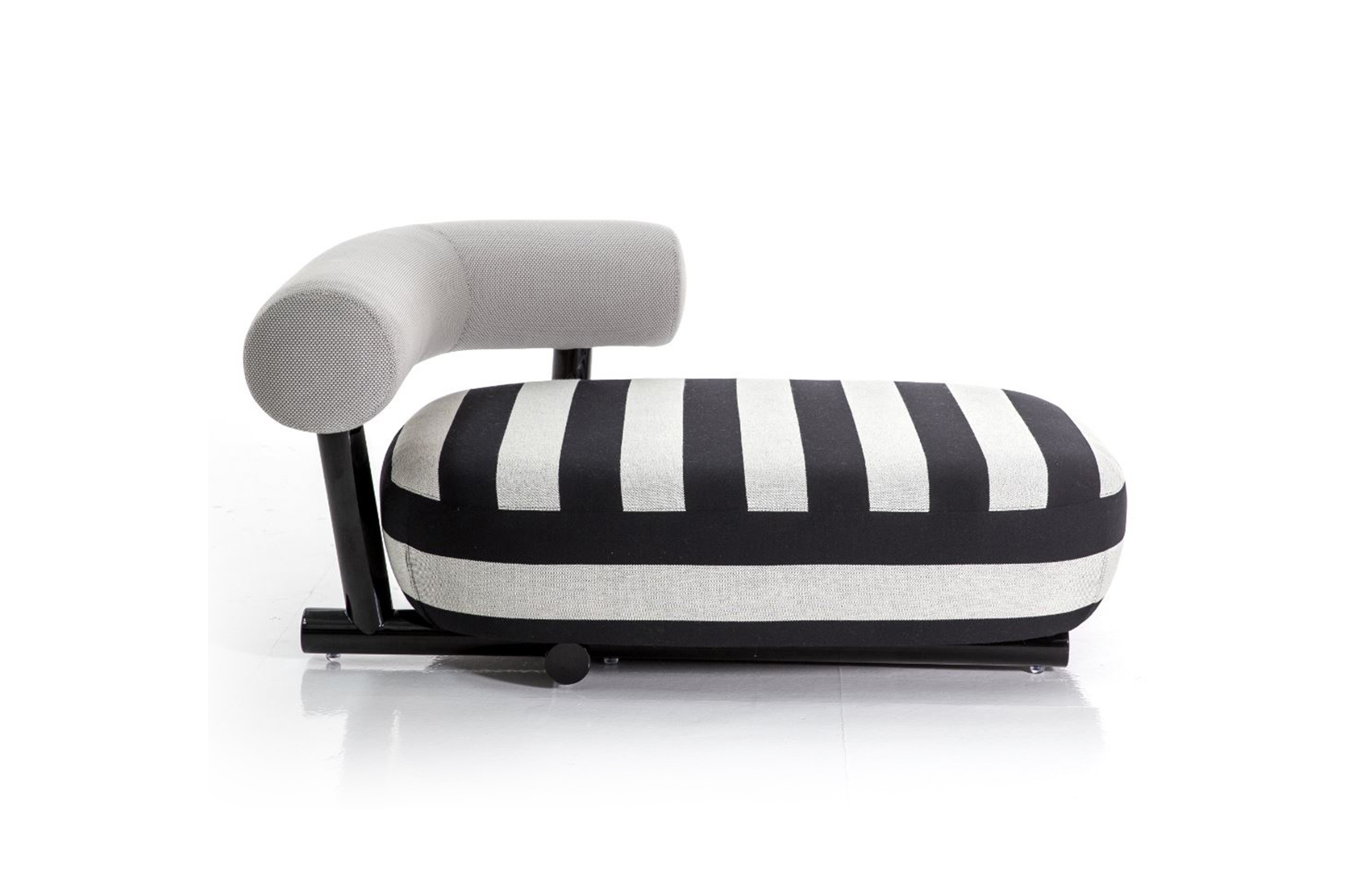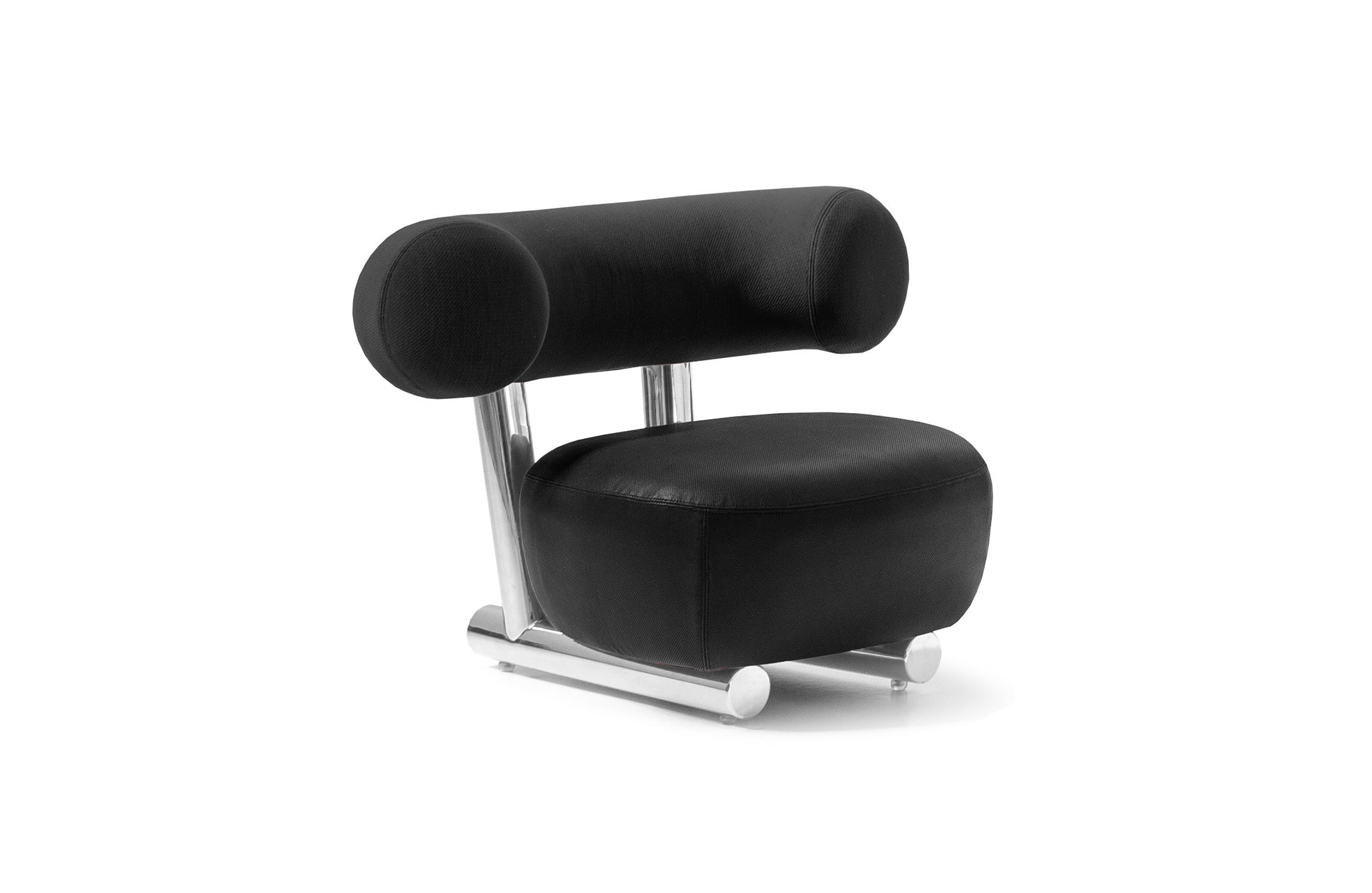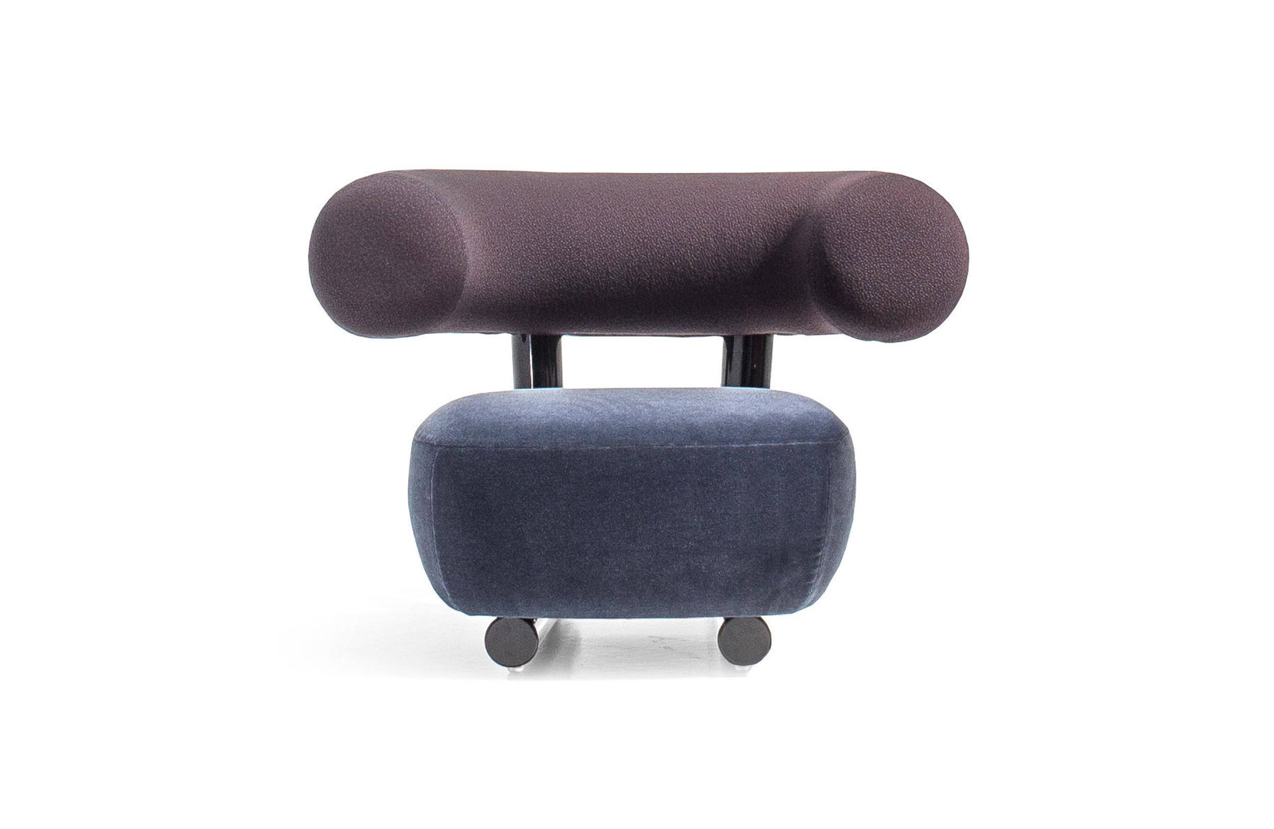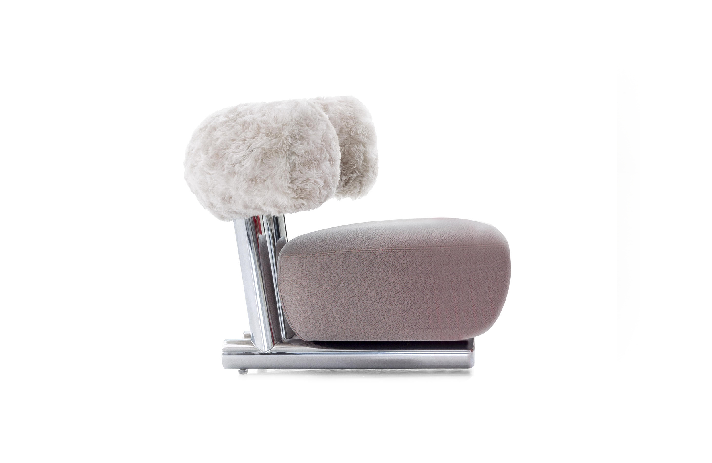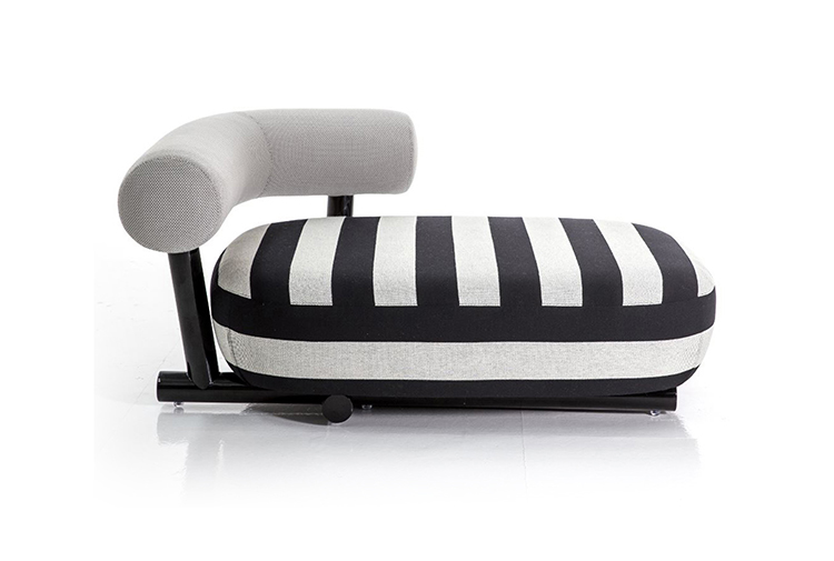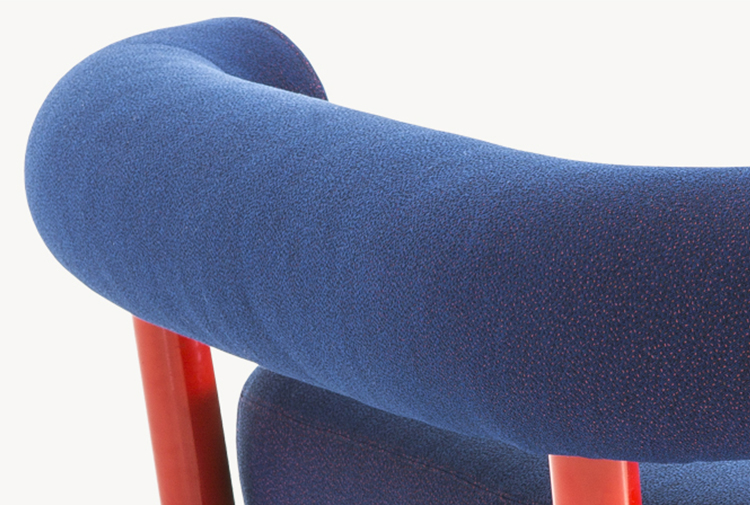 把粗糙放置在精致上面,选择一个与趋势相反的选择,而不是最常见的研究苗条的形式。尽管如此,保持轻盈,空灵。因此,设计是围绕着超大号的最让人放心的方面:简单性。这个极简和坚固的结构是用一个直径80毫米的粉彩铝管建造的。其上有一个带有圆形体形的座垫,这是一个关于充气模块的构思的隐蔽暗示。背面,就像一个大胆的圆括号,承诺给人安慰。它的效果,以及自然的吸引力,都是令人愉悦的圆润,随意而轻的。