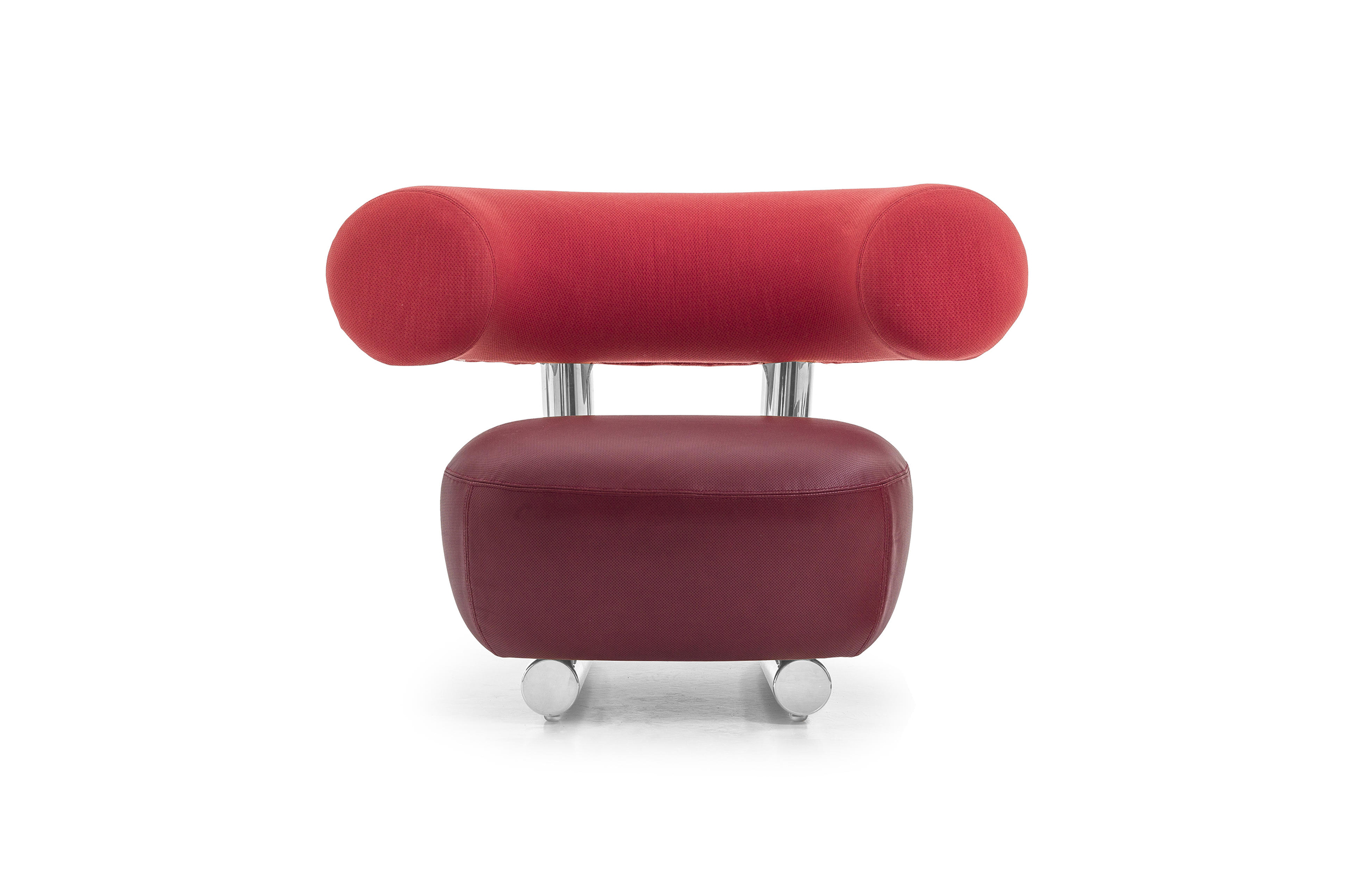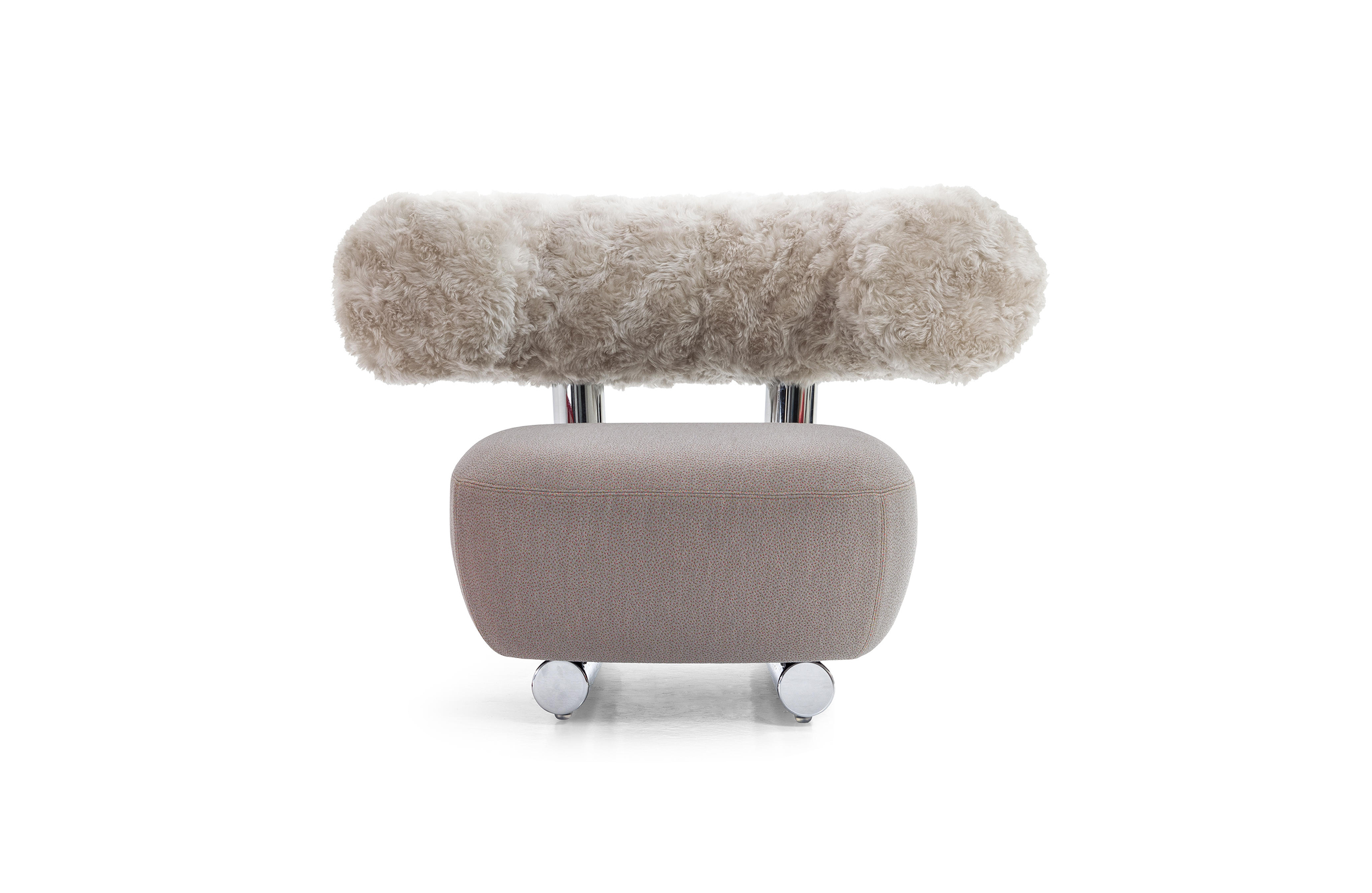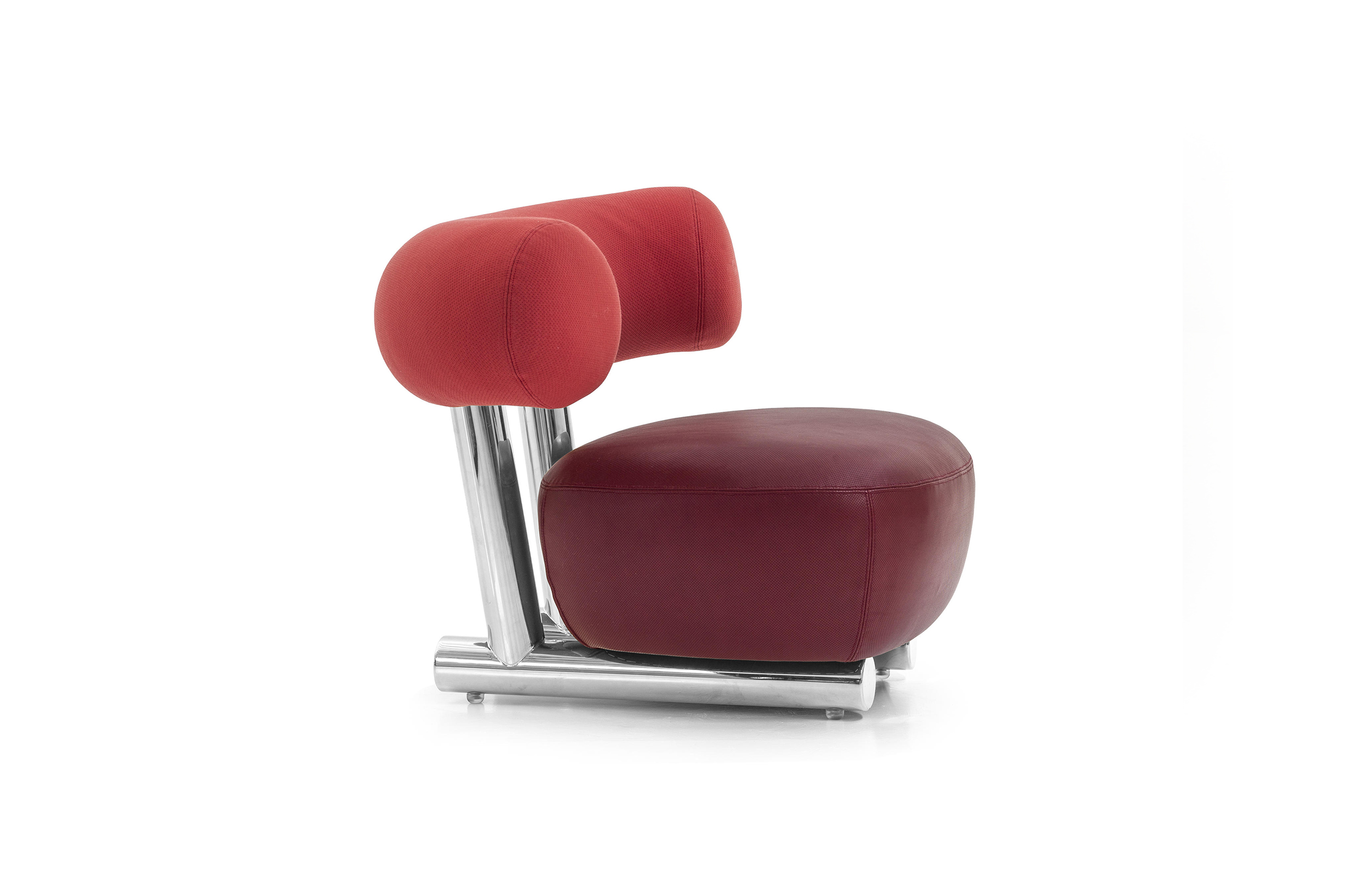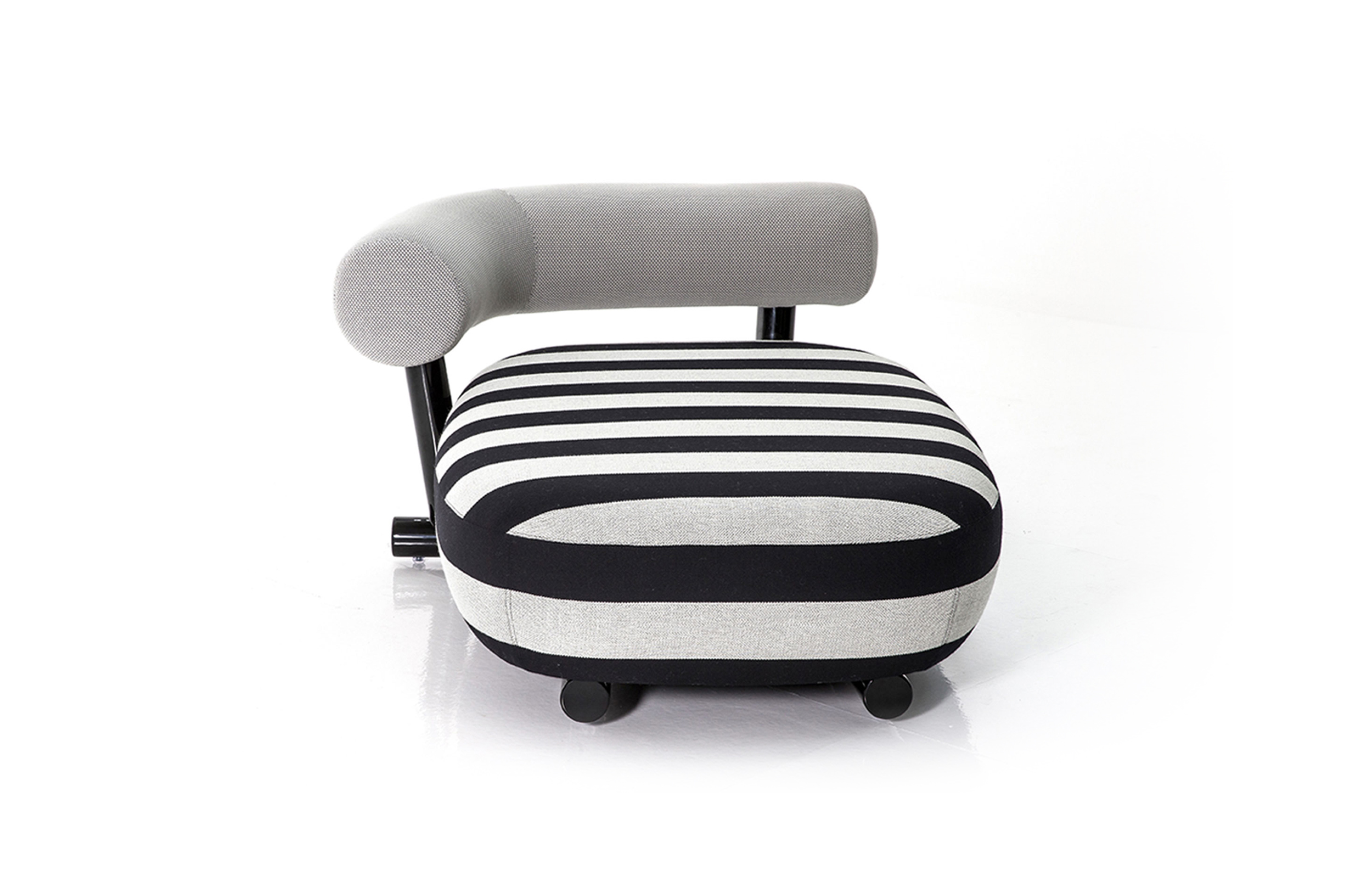 把粗糙放置在精致上面,选择一个与趋势相反的选择,而不是最常见的研究苗条的形式。尽管如此,保持轻盈,空灵。因此,设计是围绕着超大号的最让人放心的方面:简单性。这个极简和坚固的结构是用一个直径80毫米的粉彩铝管建造的。其上有一个带有圆形体形的座垫,这是一个关于充气模块的构思的隐蔽暗示。背面,就像一个大胆的圆括号,承诺给人安慰。它的效果,以及自然的吸引力,都是令人愉悦的圆润,随意而轻的。