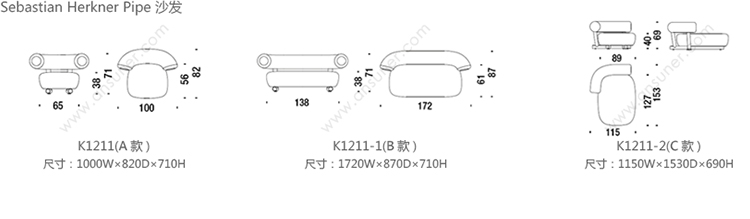 Sebastian Herkner Pipe 沙发 系列尺寸/示意图