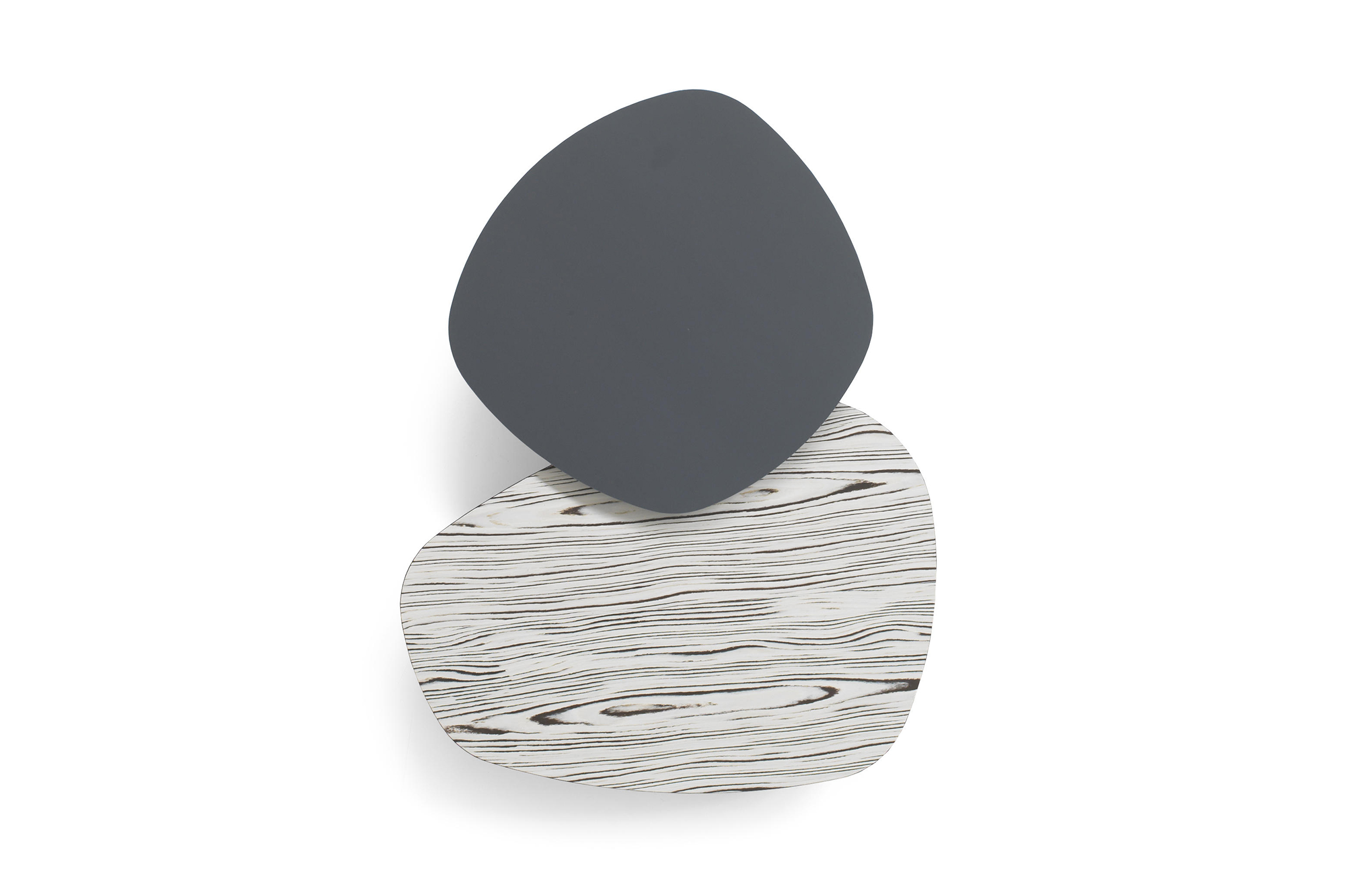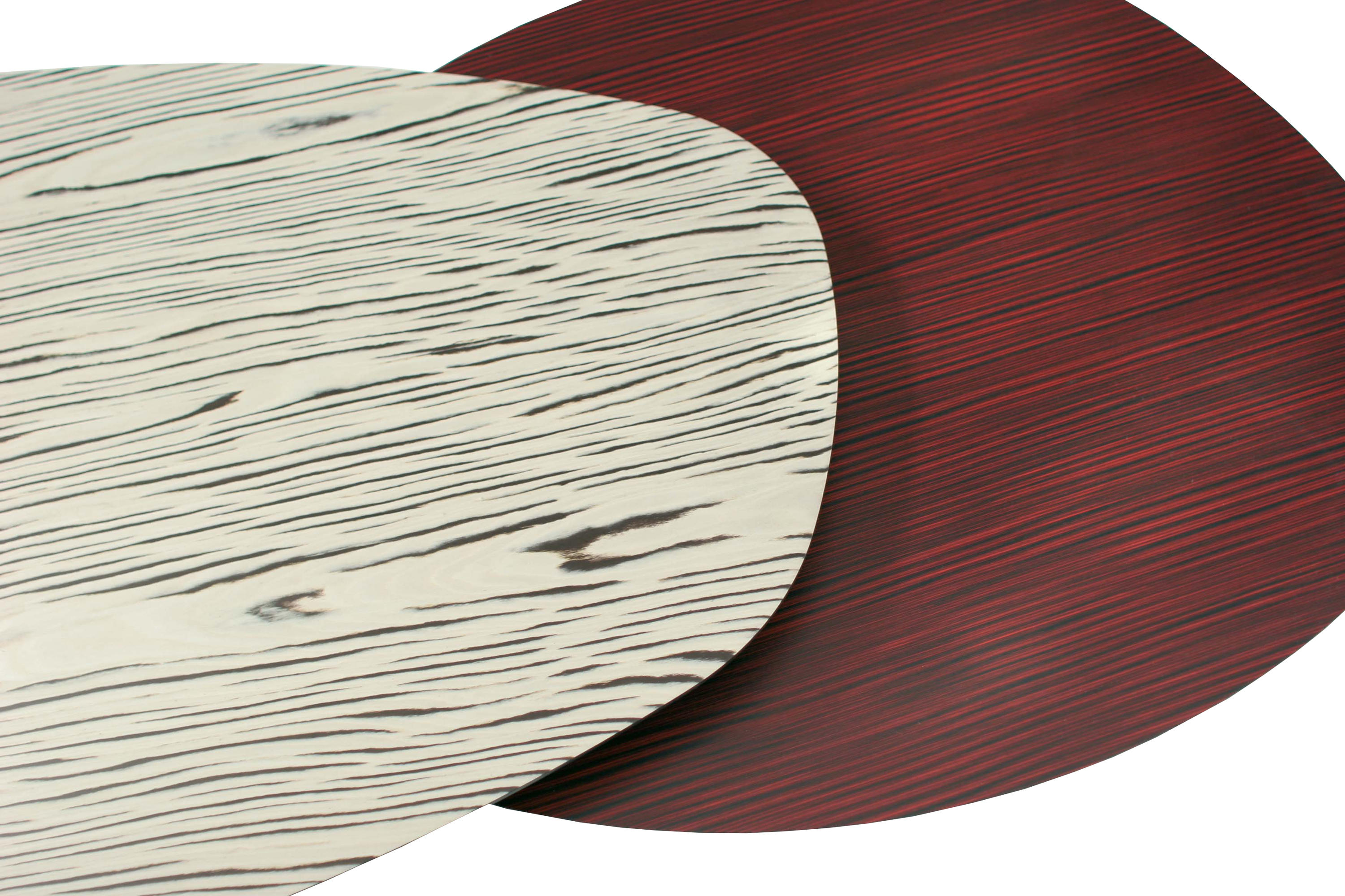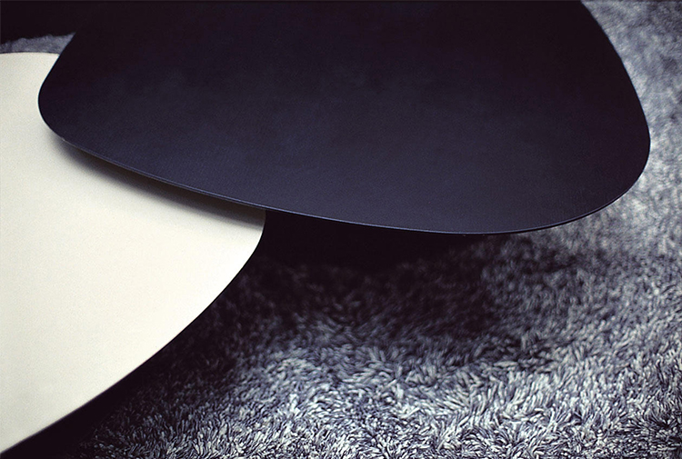 两张桌子,水平的表面,如有机形体的二维投影,相互滑动,重叠。结果是一种不均匀且和谐的结构,由地板的材料和颜色的选择而增强。菲尼克斯,名字来源于阿拉伯神话中的不死鸟,在火焰中死去,从灰烬中涅槃,没有任何痕迹;更确切地说,是科幻小说——《星际迷航》中的“菲尼克斯号”。