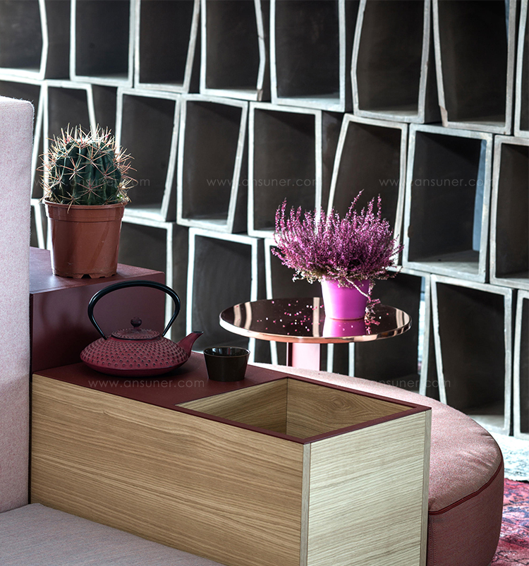 设计相互作用,轨迹控制空间。比基尼是一种风景,它是时代的产物,是它所代表的社会。无论是在等候区还是在家中使用,座位系统是绝对灵活的,因为不需要空间的布局和座位组件的排列。这些组件在外观和功能上各不相同,因此,它们可以在任何设置中使用。凳子、桌子、衣架、容器、架子、屏风、工作台、座椅:每一个元素都结合在一起,创造互动和交流。多种功能和含义的结合意味着沙发作为看电视的家具或简单的休息场所的概念发生了革命性的变化,使它成为互动的核心。