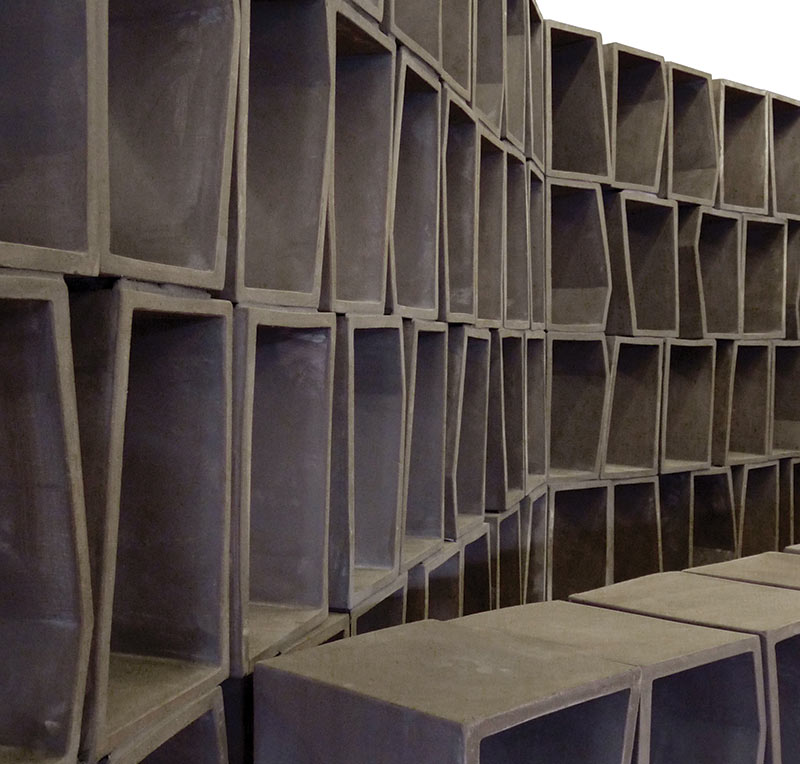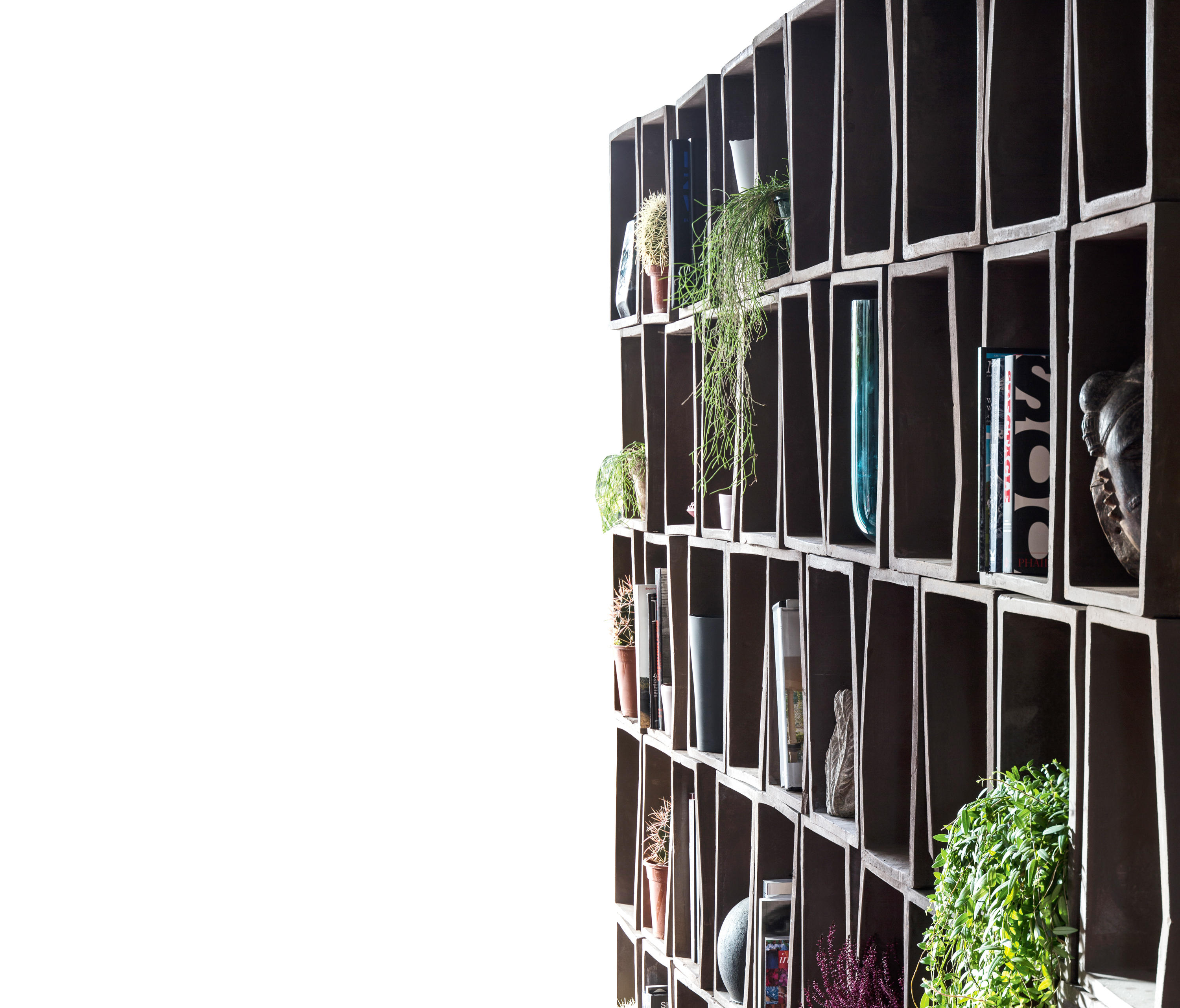 书柜是我们记忆的持有者,通常是用木头、金属或玻璃制成的,但绝不是粘土。Terreria创造的空间既可以是新的也可以是旧的,也可以是城市的,也可以是乡村的。Terreria的部分是模块化的家具,部分是意大利农舍式的窗户,可以俯瞰乡村。单一的元素可以被组装起来,以产生无限的配置,并利用陶瓷的多种潜力:它的颜色、色彩和触感,从陶土的各种粗哑到各种不同色调的清漆的光滑。它是一个开放的系统,集合不同组合的灵活性意味着没有一个设计或外观是完全相同的。