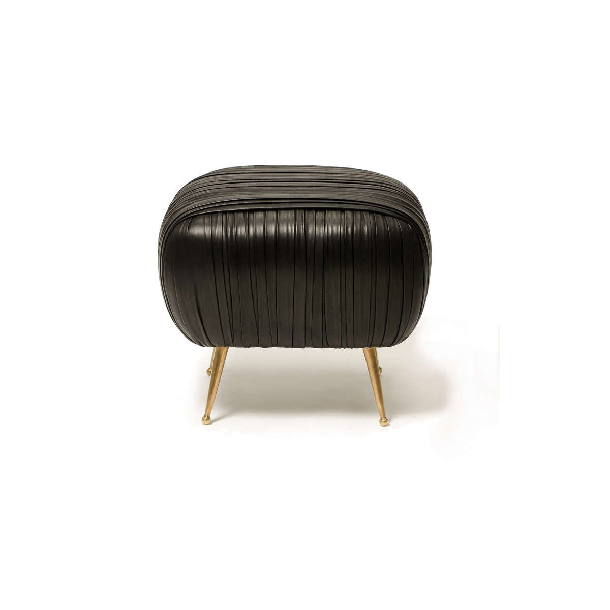 这款软垫的精致线条采用标志性褶皱皮革细节设计。 全面的蔬菜染色小羊皮手工缝制在框架上。 这款精致细腻的豪华矮凳坐落在坚固铸青铜的锥形腿上。 这是一个优雅的作品,小巧的比例,与舒芙蕾椅的完美搭配,或作为自己的声明。