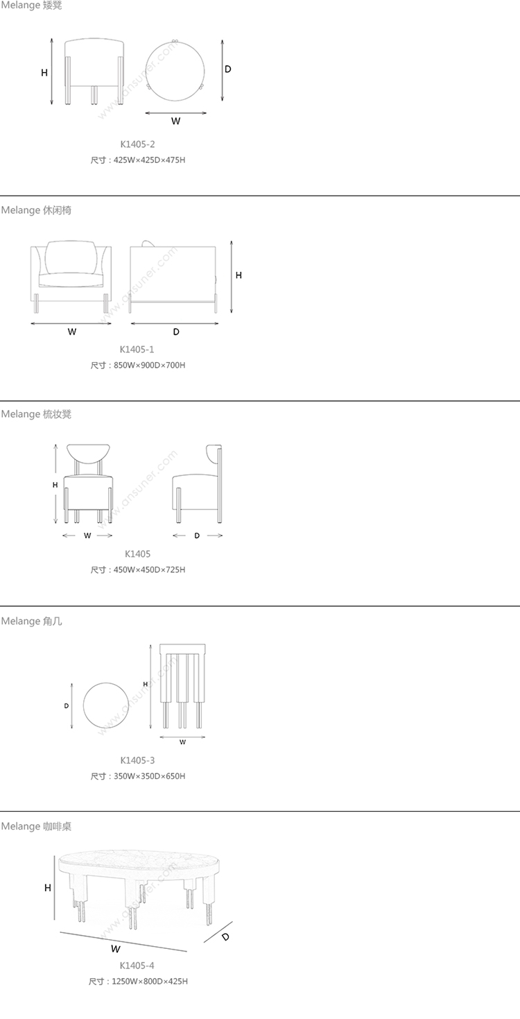 Melange 矮凳 系列尺寸/示意图