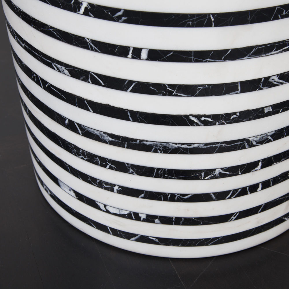Lineage凳子融合了混合大理石和建筑构造形式,体现了艺术与功能的现代二元性。 这款雕塑般的整体式凳子采用交替层叠的天然黑色玛奎那和白色大理石,经过磨光处理。