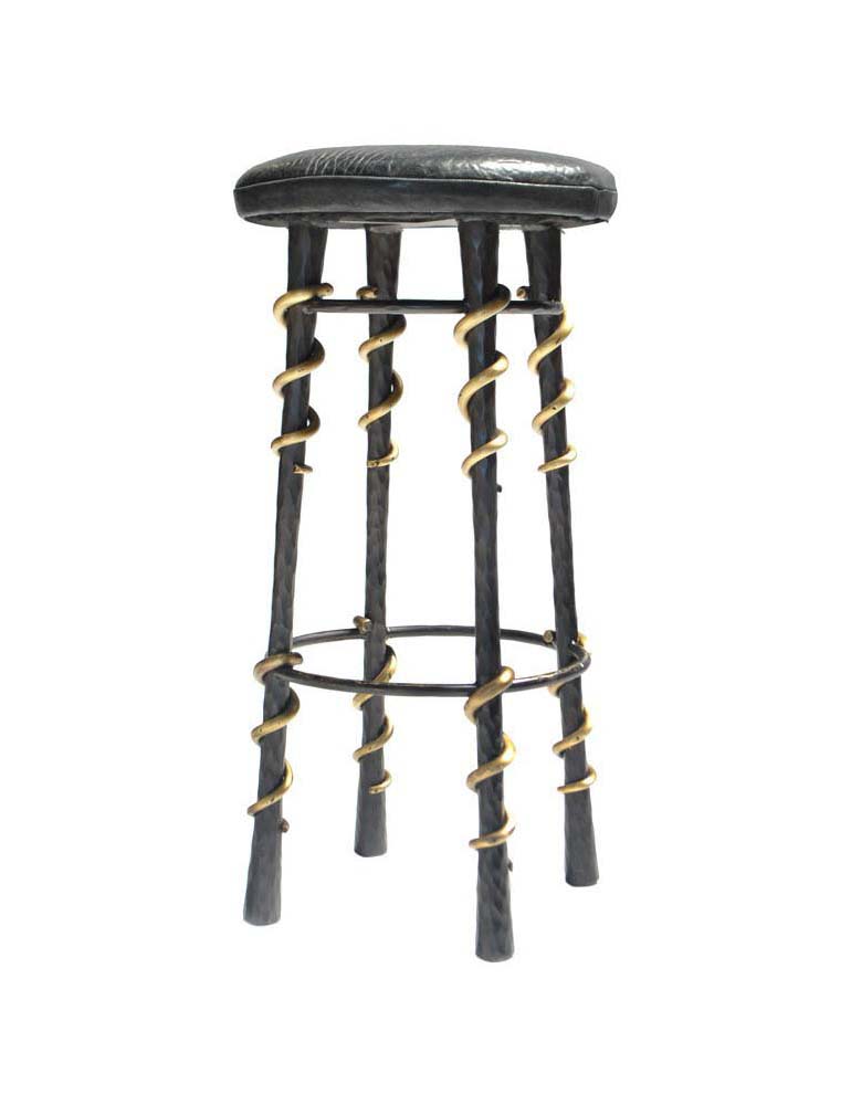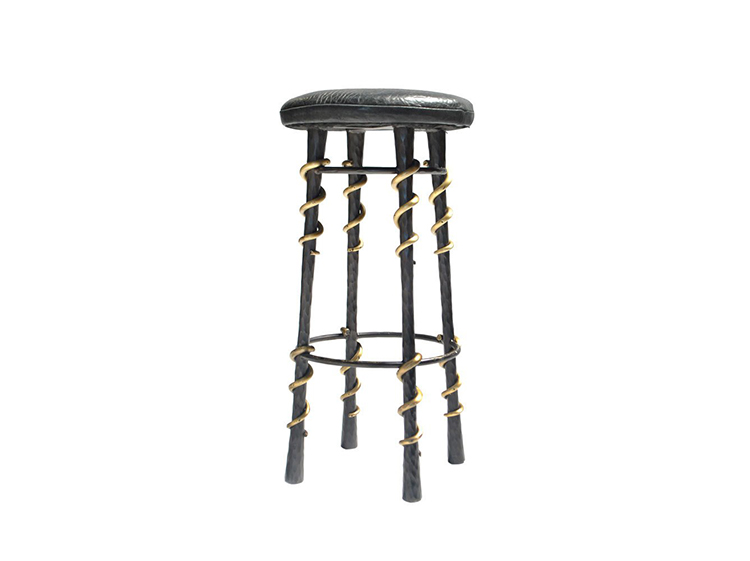 这款性感而简约的凳子采用手工锻造的黑色钢制成,并配有青铜蛇纹细节。 每个坚实的,切片雕刻的腿都是手工涂抹的深油擦青铜色。 座椅采用柔软的黑色纹理皮革装饰。 Serpent Stool采用黑色手工锻造钢材制成,可以采用各种纹理,奢华皮革装饰。