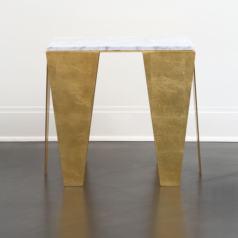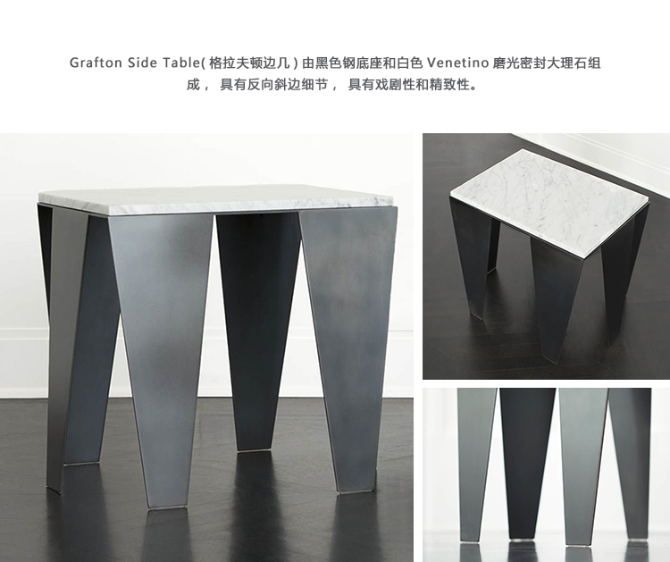 Grafton Side Table(格拉夫顿边几)由黑色钢底座和白色Venetino磨光密封大理石组成,具有反向斜边细节,具有戏剧性和精致性。 这种雕塑设计借鉴了凯利对几何形状的热爱以及对负空间的巧妙运用。