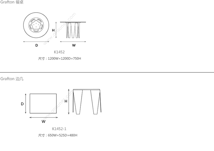 Grafton 餐桌 系列尺寸/示意图