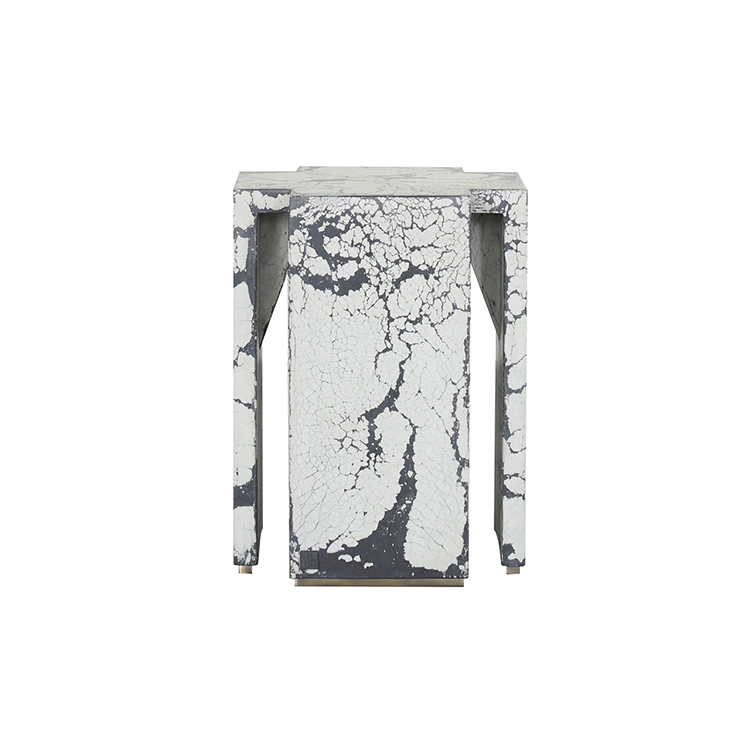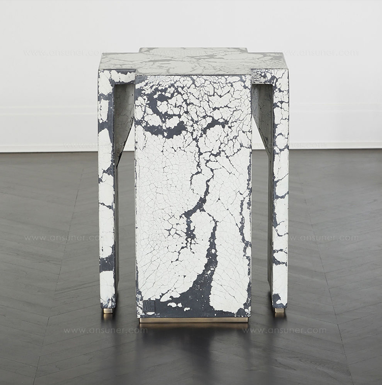 这个现代和建筑边几是手工浇筑的混凝土。 混凝土中充满了颜料,使每种形状都具有完全独特的色偏。 每个十字形腿都终止于坚固的抛光黄铜脚。 每张桌子的一面都印有Kelly Wearstler标志。