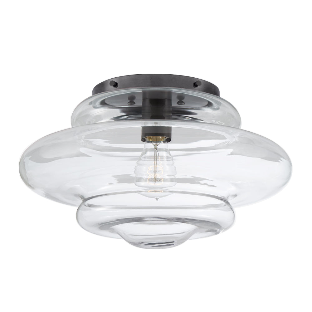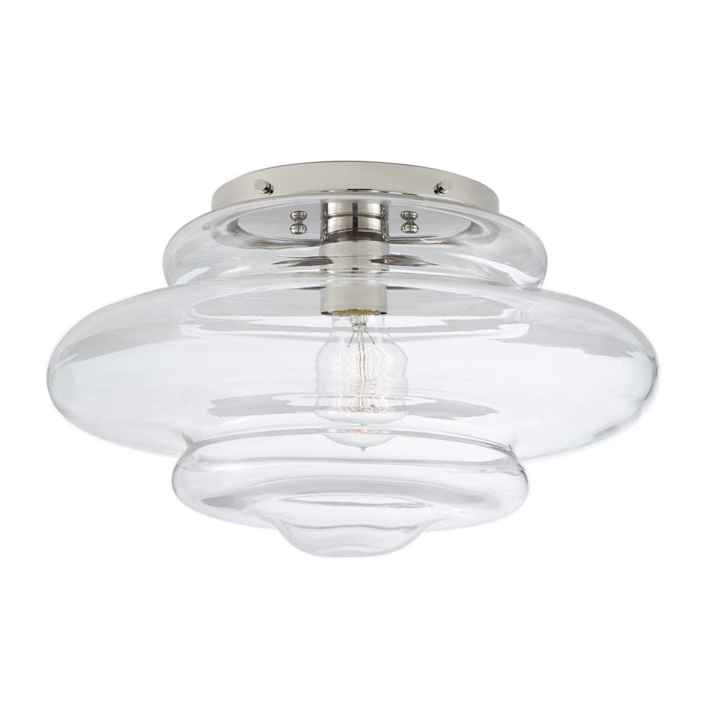 Tableau Medium Flush Mount(Tableau中型吸顶灯)是一款具有动态吹制玻璃罩的现代经典款。 这款嵌入式安装座采用古董抛光黄铜,青铜或抛光镍制成,带有透明或纹理喷砂玻璃,适用于潮湿环境。