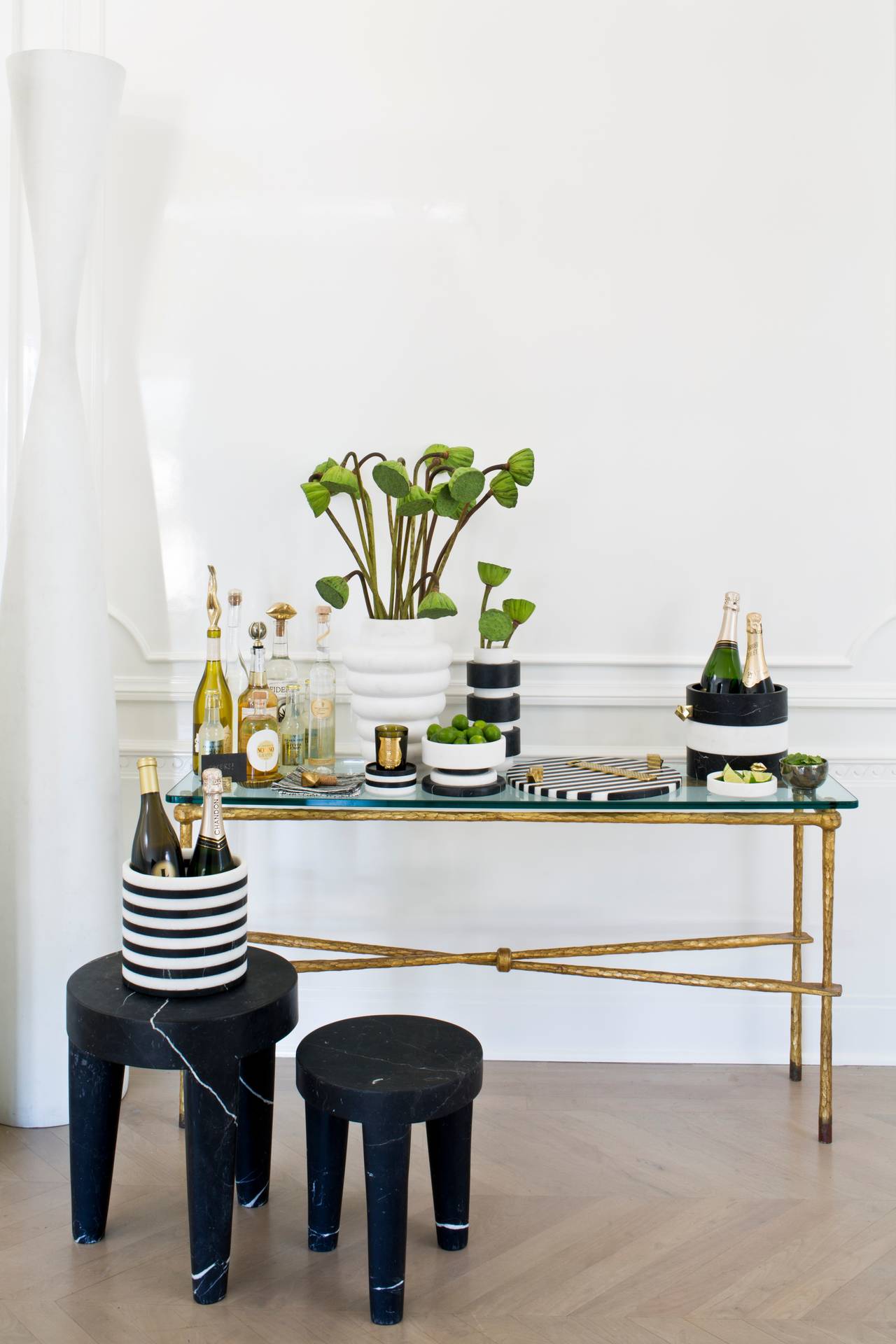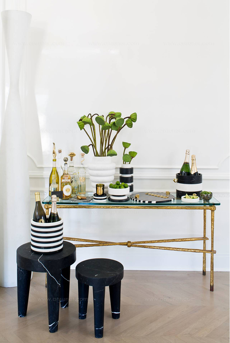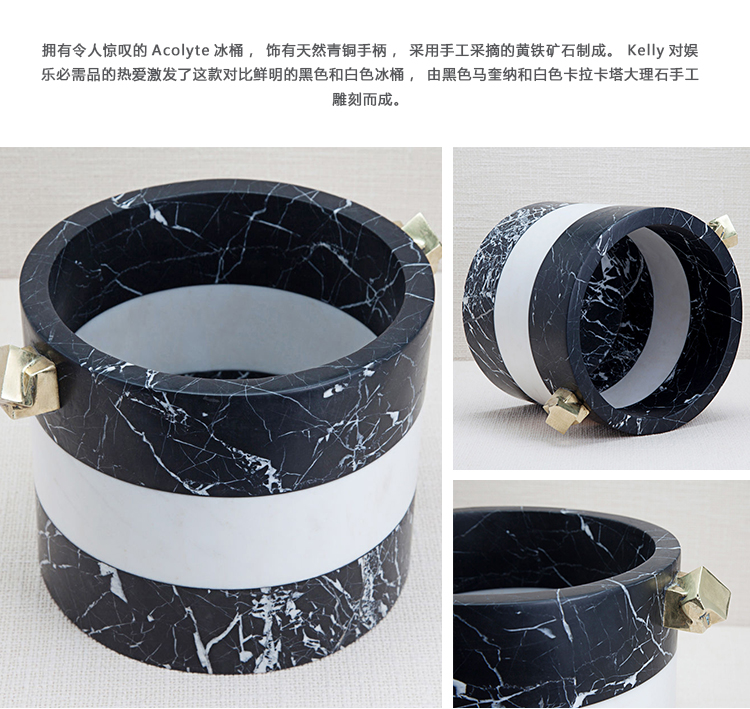 拥有令人惊叹的Acolyte冰桶,饰有天然青铜手柄,采用手工采摘的黄铁矿石制成。 Kelly对娱乐必需品的热爱激发了这款对比鲜明的黑色和白色冰桶,由黑色马奎纳和白色卡拉卡塔大理石手工雕刻而成。
