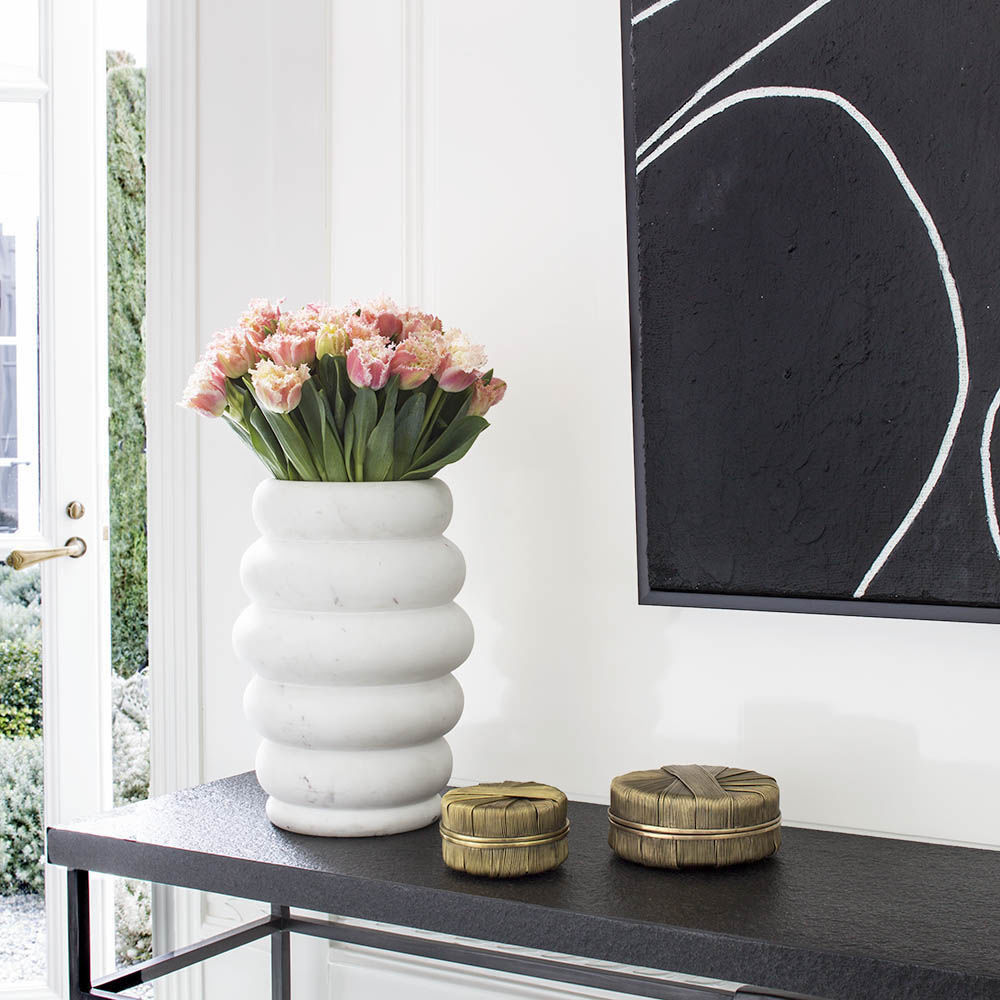 这款黄铜线包裹盒采用洛杉矶手工制作,顶部和底部饰有verde铜绿色细节。 这个盒子是床头柜或梳妆台的完美选择。
