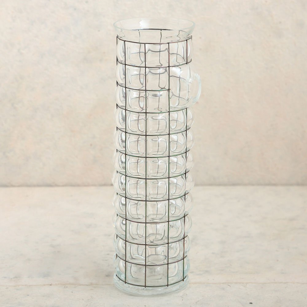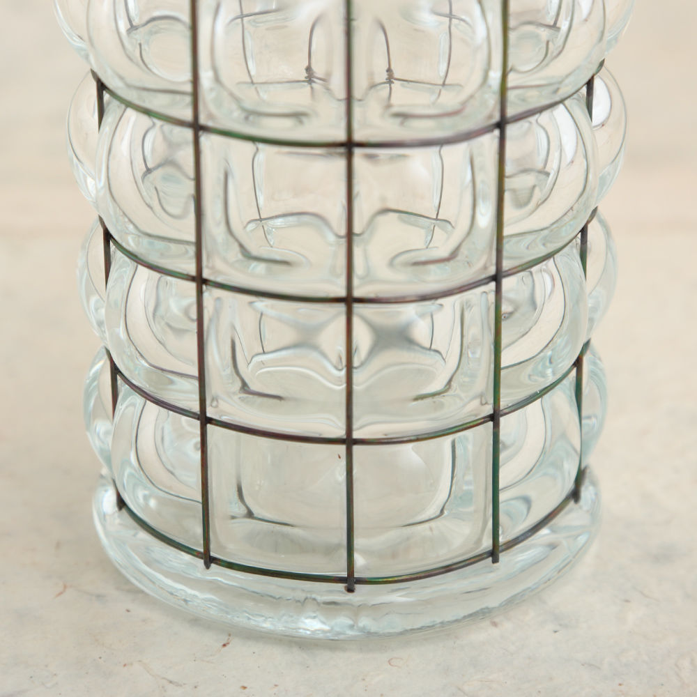 这款冰壶是由手工吹制的玻璃制成,上面绑着一根破旧的金属丝。