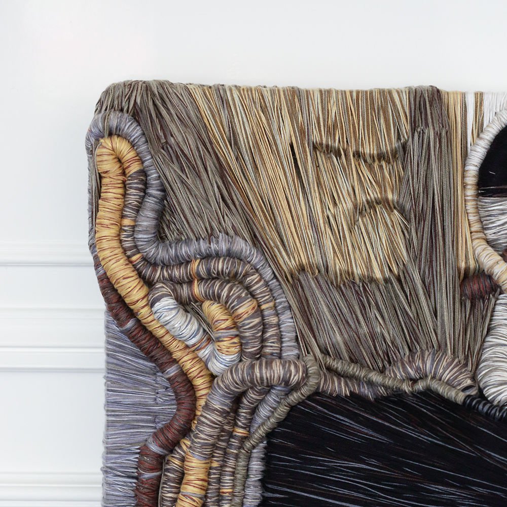 由Ruben Marroquin设计的缠结纤维艺术壁挂结合精细埃及棉,拉伸比利时亚麻,日本丝绸,青铜金属纱线,金属纤维和木制工业绳索。 这些戏剧性的艺术品是通过手工编织纤维纤维,将其应用于艺术家手工制作的铝制框架而创造出来的。