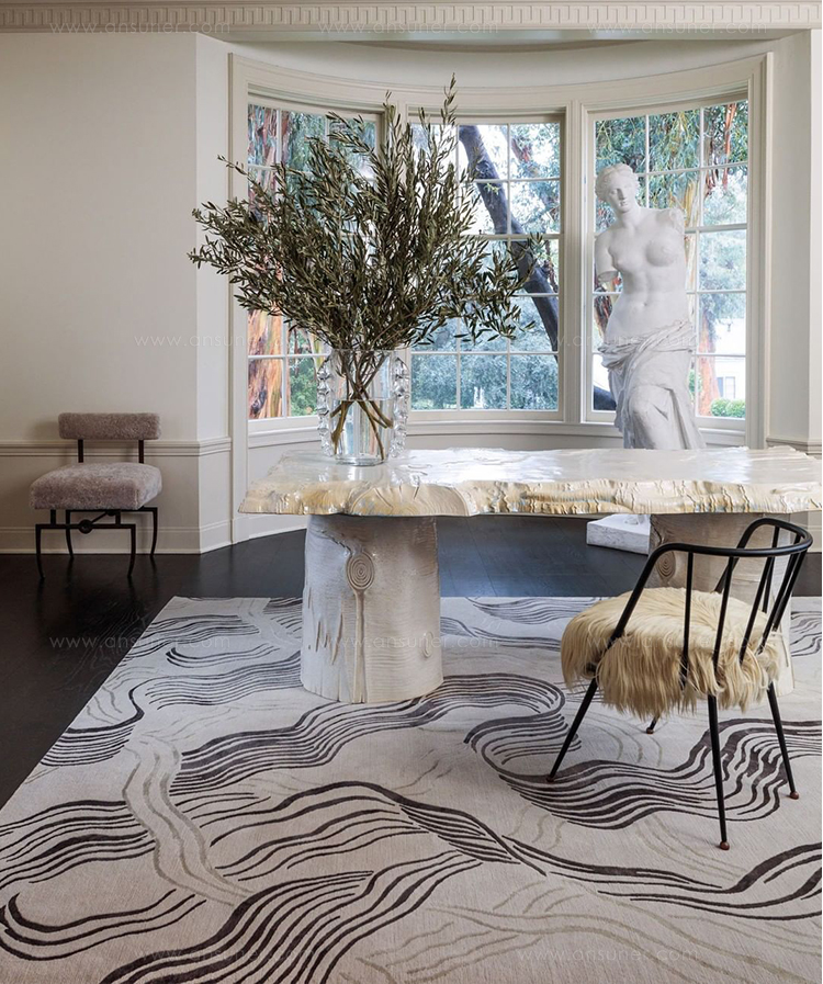 Wake是一种手绘设计,从水的流动性和运动中汲取灵感。 这是一种自信而又过渡的模式。 线条的复杂性在任何空间都感觉精致优雅,而层次色调则营造出丰富的尺寸和质感。 由西藏羊毛和丝绸组成。