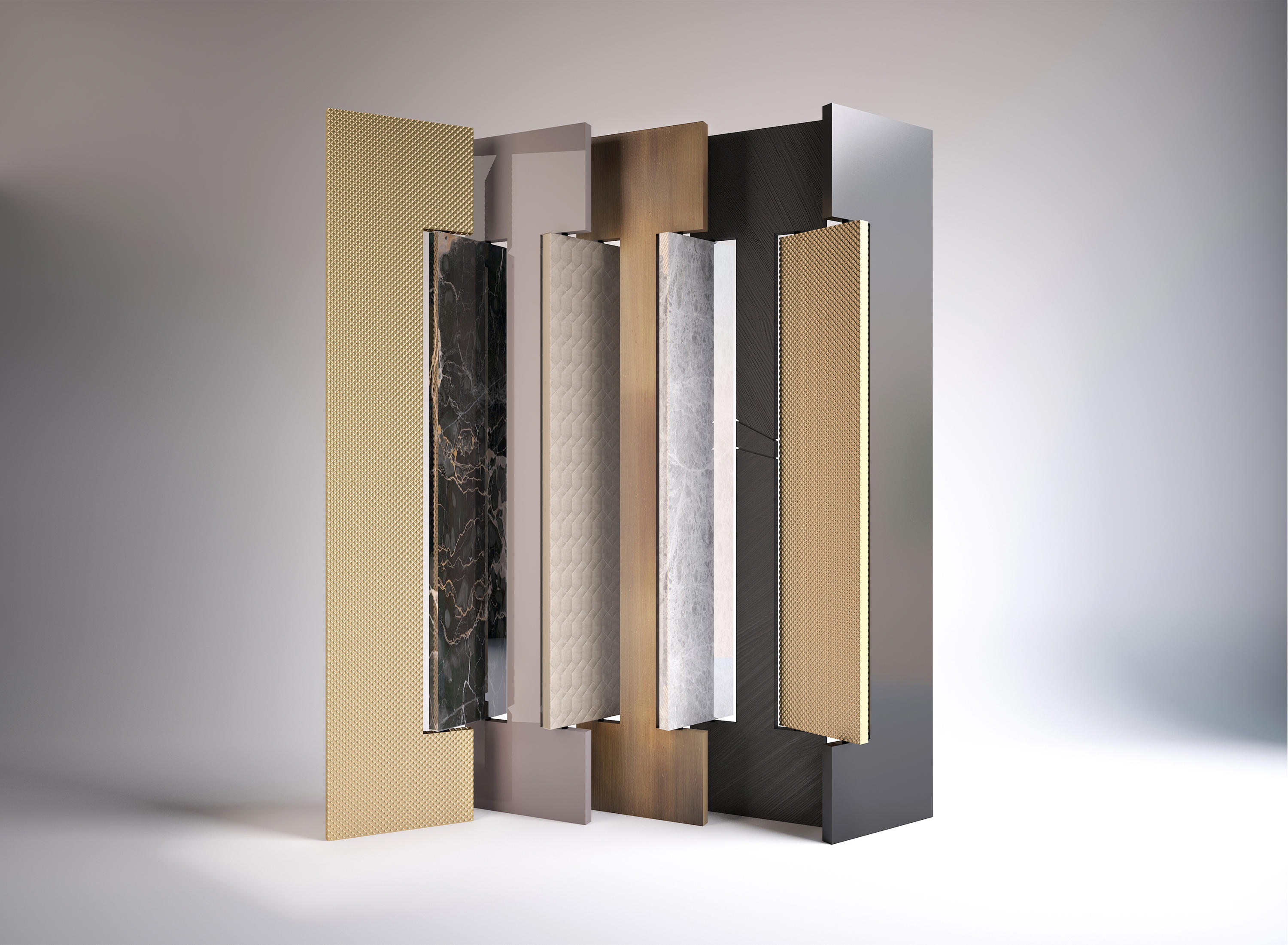 大理石、黄铜、石头、木头都是珍贵的镶嵌镶嵌物,揭开它神秘的面纱。帝国的屏幕展示了它强调材料价值的三维空间。石头上的雕刻,大理石光滑的表面,金属的滚花,木材的许多细微之处,与眼睛和触摸的交替和对比,给空间的装饰和空间的补充提供了绝对的区别。