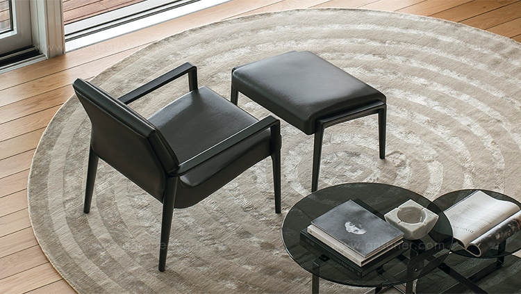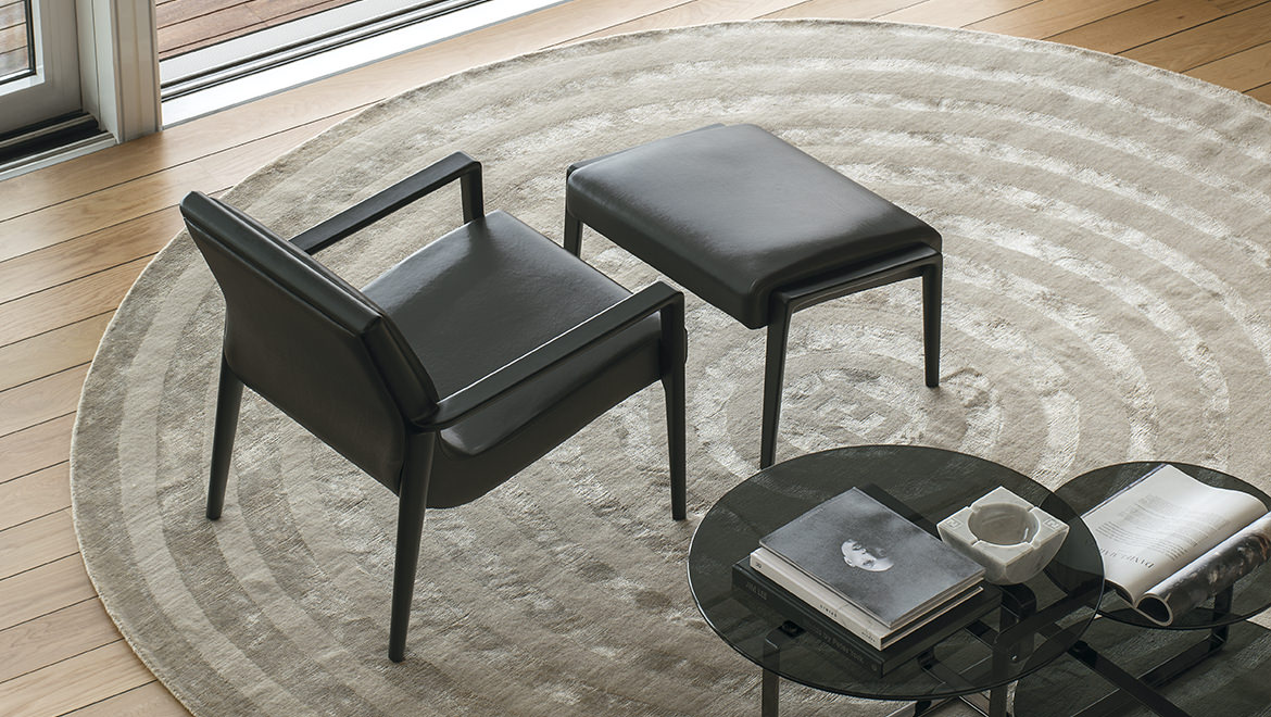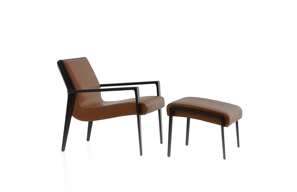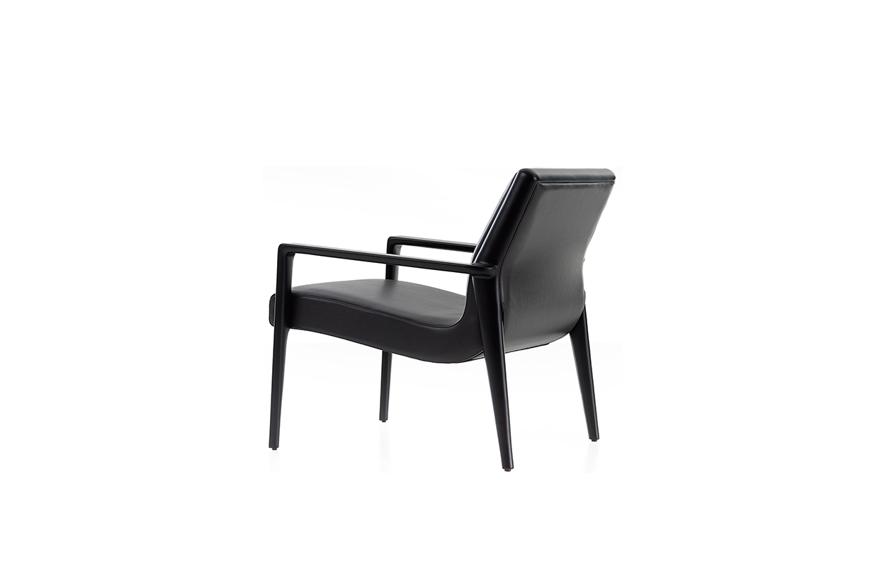 The Nairobi armchair Lounge version has a solid-wood structure stained dark brown and has been reinterpreted in traditional, harmonious and fluid cabinet-maker style without any interruptions in shape.