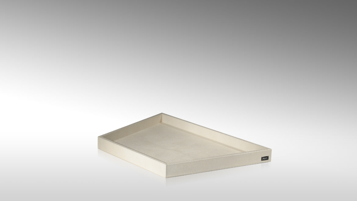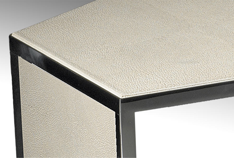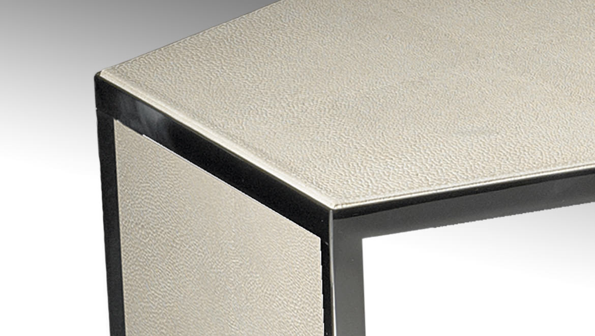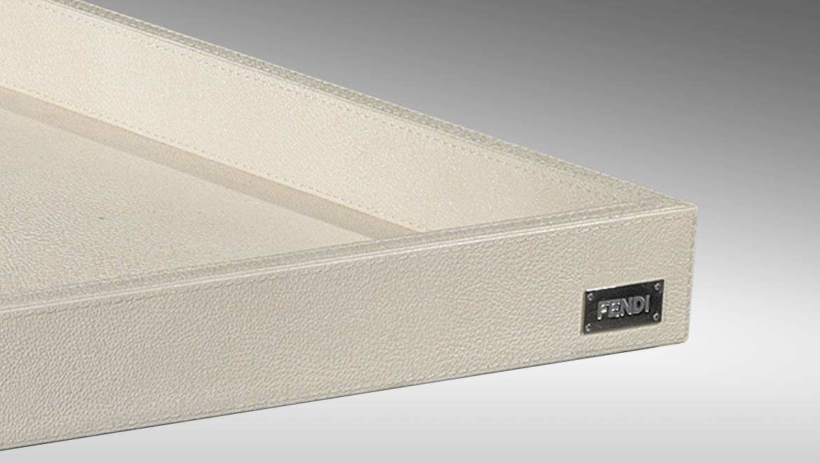 Wooden top and tray polished lacquered, covered in leather, veneered with