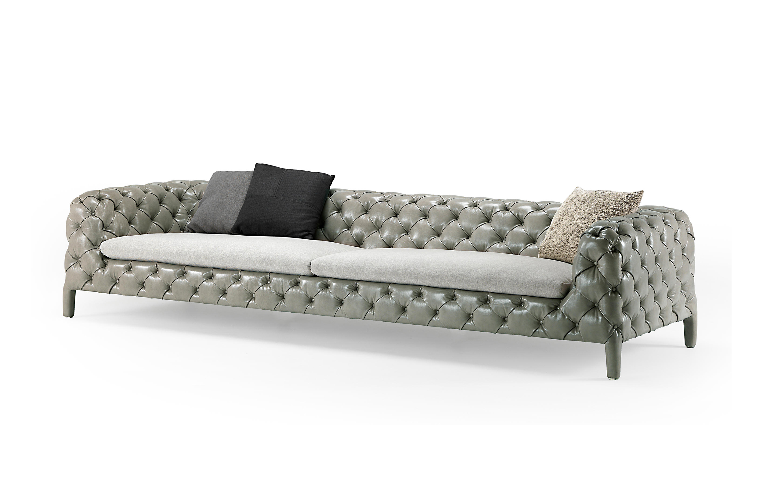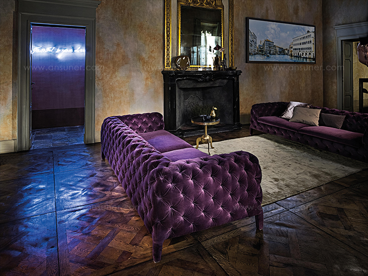 Windsor与各种各样的家具相适应:在传统的环境中,它是完美的,在现代的背景下,它就像一件有价值的艺术品。这款沙发专门由capitonne装潢设计,有着明显独特的感觉。这是精致而复杂的,但也很柔软,很受欢迎,因为这颗独特的纽扣被埋在了衬垫的钻石缝里。Windsor已经扩大了它的范围,还有314厘米的超大沙发。此外,天鹅绒的新版本给沙发带来了柔滑和奢华的外观。