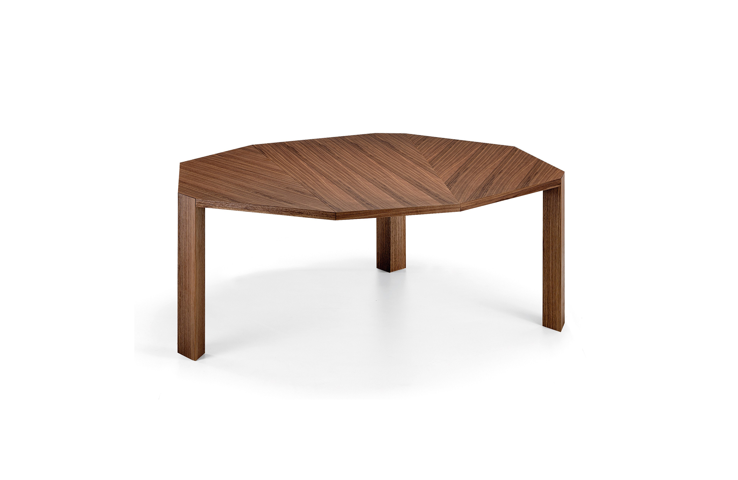 这张餐桌因其独特的八角形当代设计和个性而引人注目。ig XXL是独一无二的,因为它只有三条腿。具有多面的镶嵌面的桌面允许它在房间不同的位置上进行陈列,或一面靠在墙壁,或放在客厅里。它是由MDF镶嵌在卡纳莱托胡桃木、橡木或苏皮亚木中制成的。
