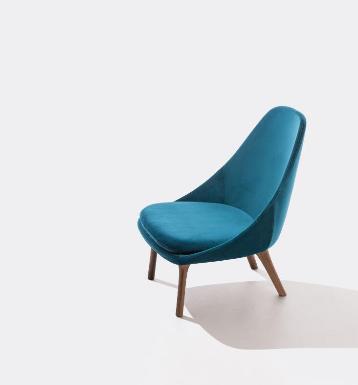 Tundra座椅采用周身软包的设计搭配实木椅腿,两种材质融合的浑然一体,就好像是完整切割下来的形状。达到这样的效果绝非易事,我们首先用模具将太空记忆棉塑造出应有的造型,并在一块木材上切割出四条椅腿,低位的座椅和半圆形的周身,外加可拆线的舒适椅
