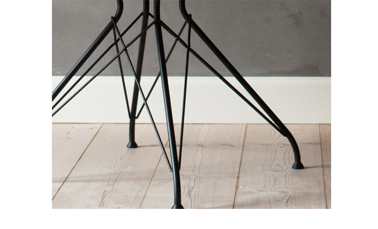 金属丝茶几由Jasper Overgaard和Christian Dyrman设计。2014年设计的金属丝躺椅是一种更低、更宽、更平放的版本,与铁丝餐椅相比。