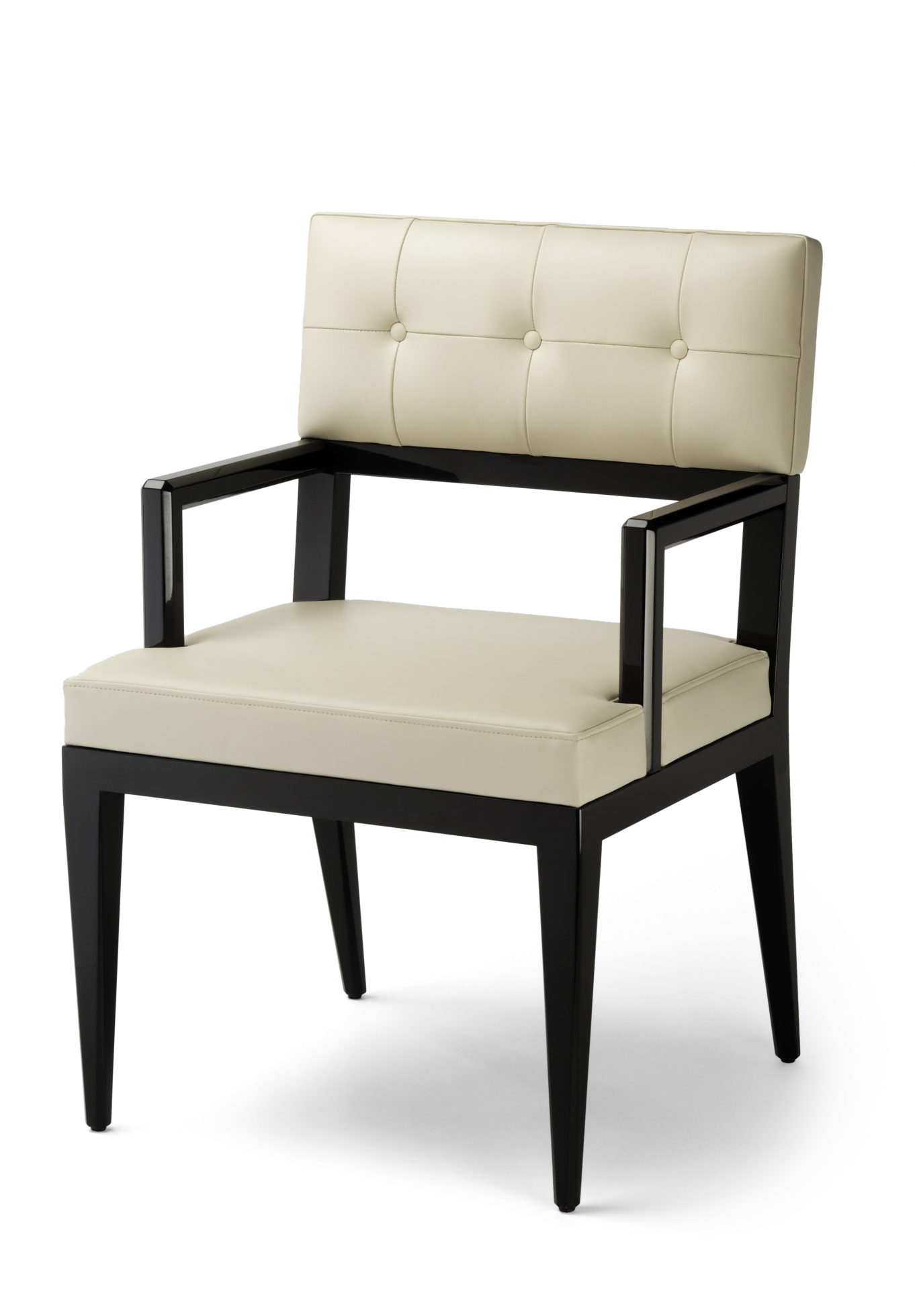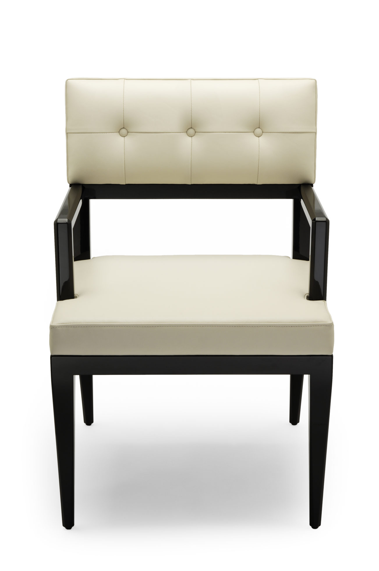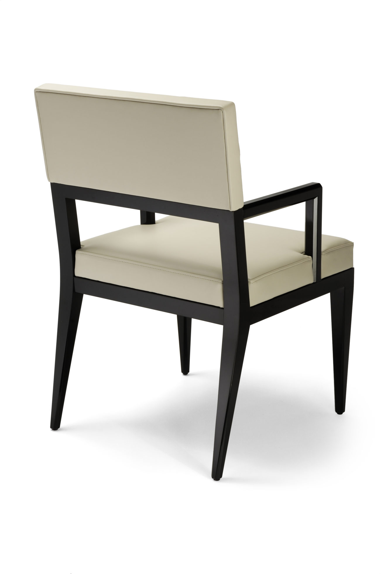 华丽的餐椅结合了高尚的风度和现代的风貌。椅子的特点是扣紧的靠背垫和实心的胡桃木或橡木腿。