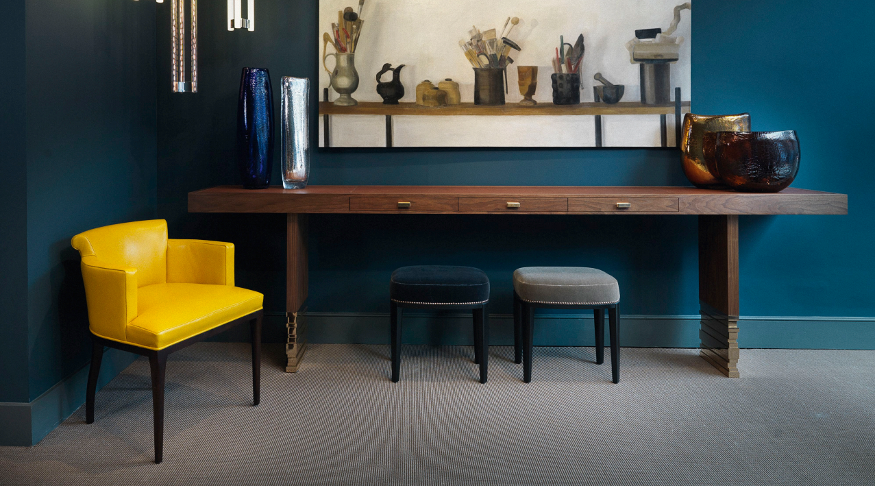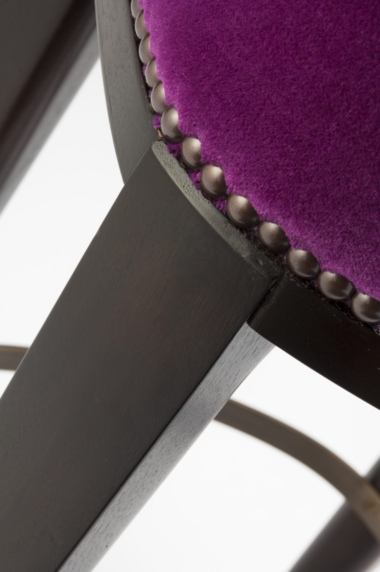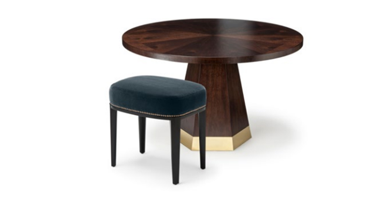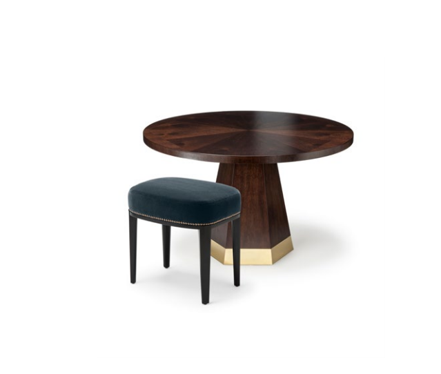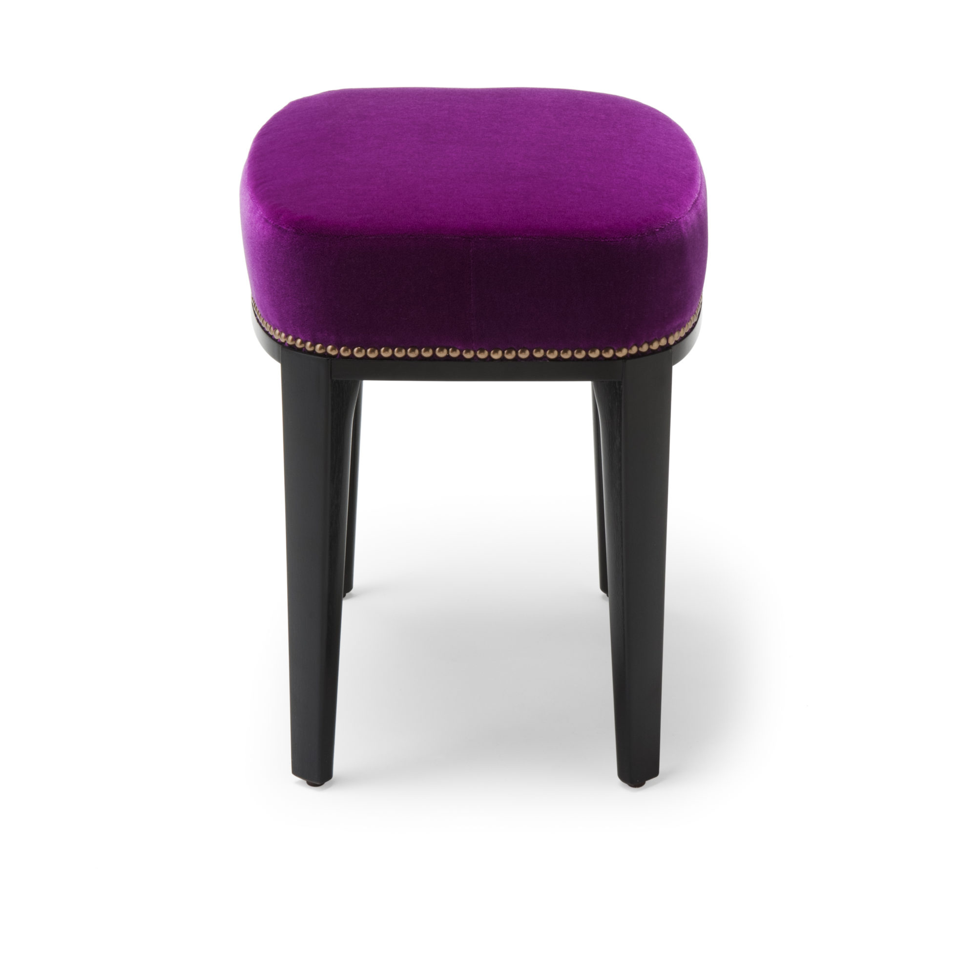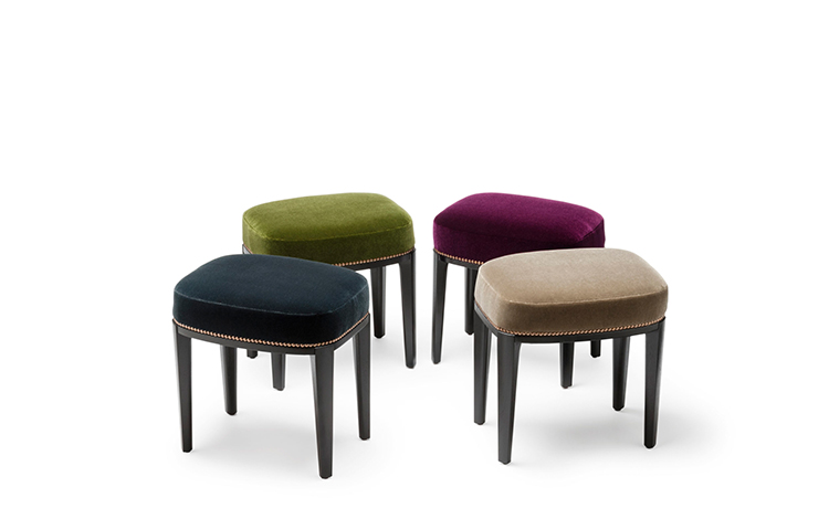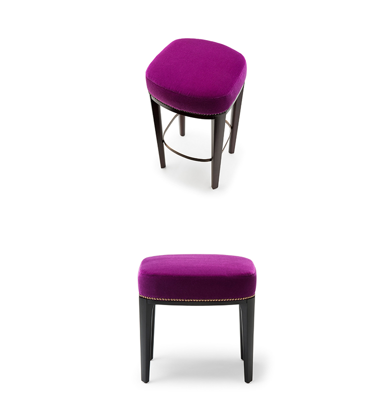 Babo是一个简单的、优雅的凳子都具有美国黑胡桃木、橡木雕刻手腿和一圈装饰钉在座位。