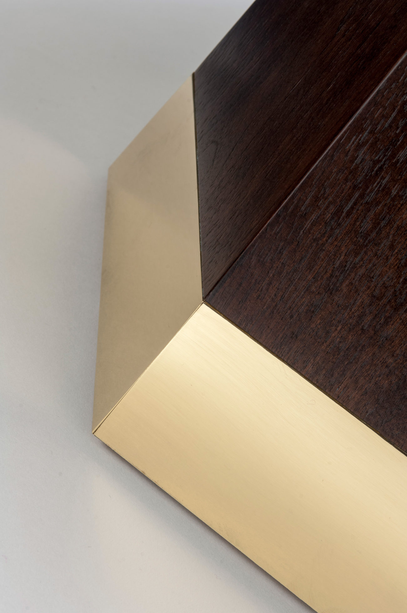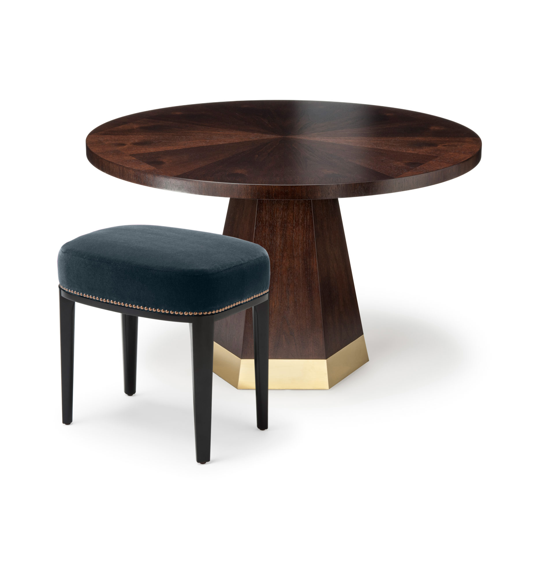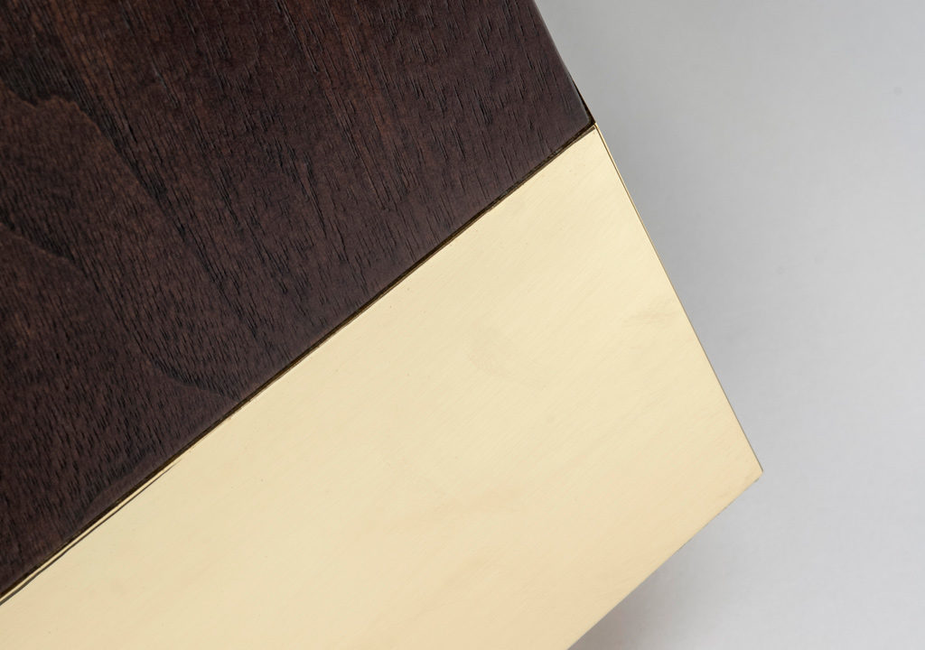 Equilibrium表显示在美国黑胡桃“巧克力乌木缎”中,带有拉丝黄铜底座。