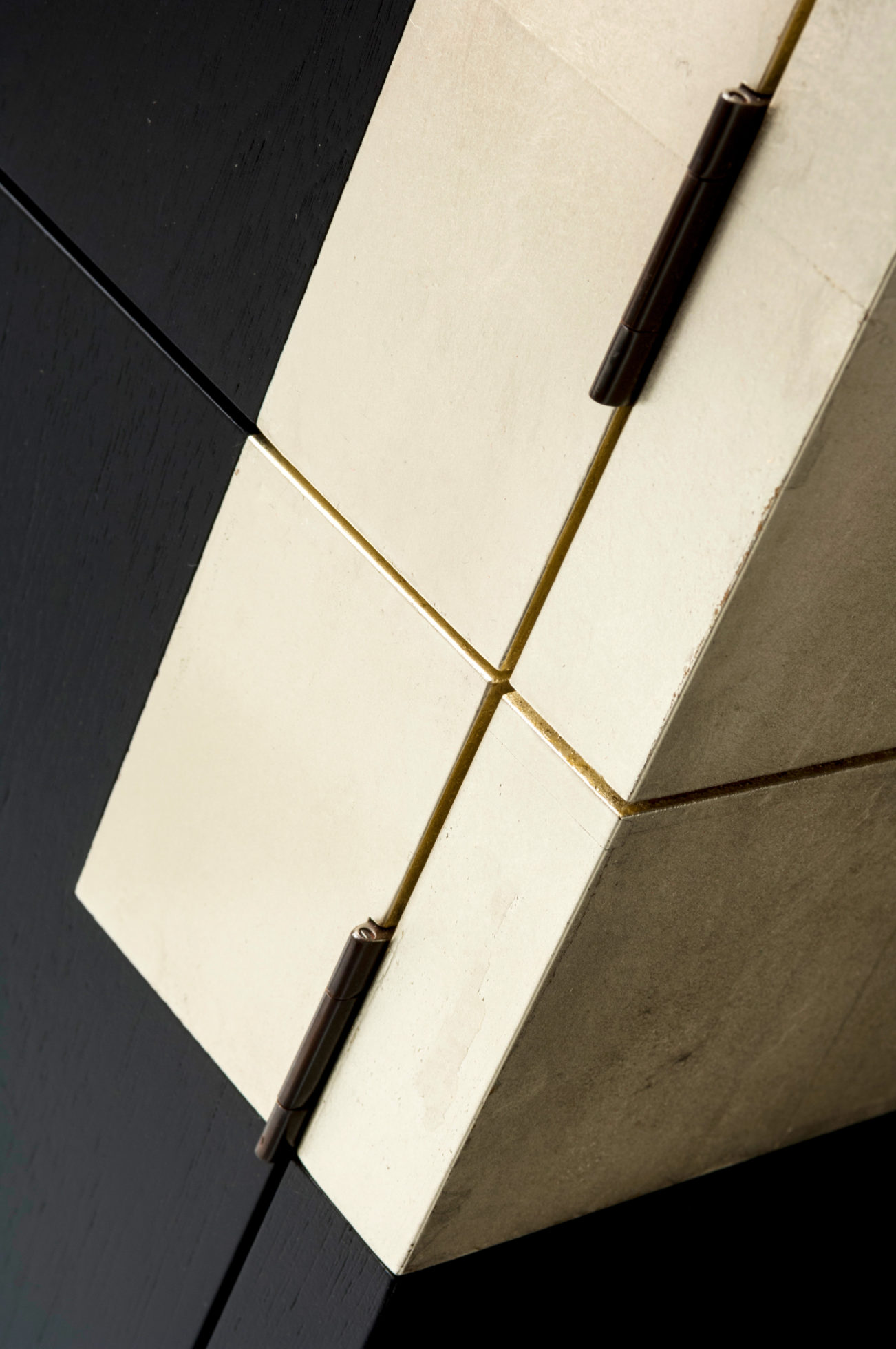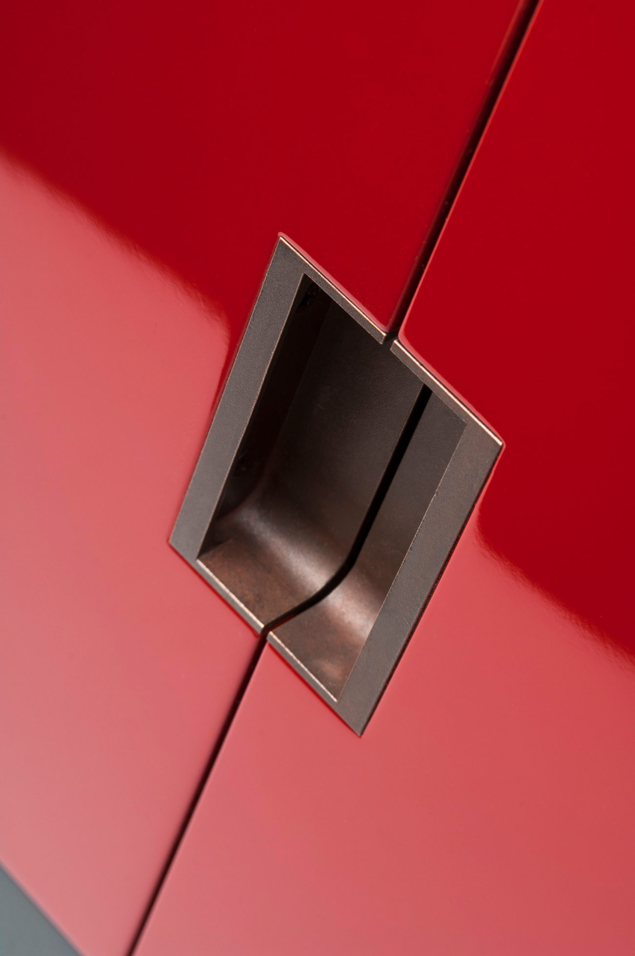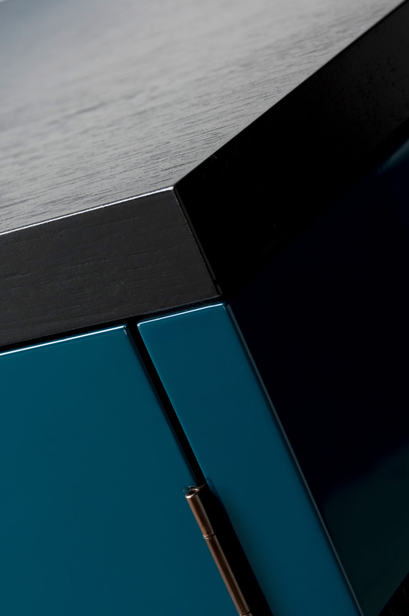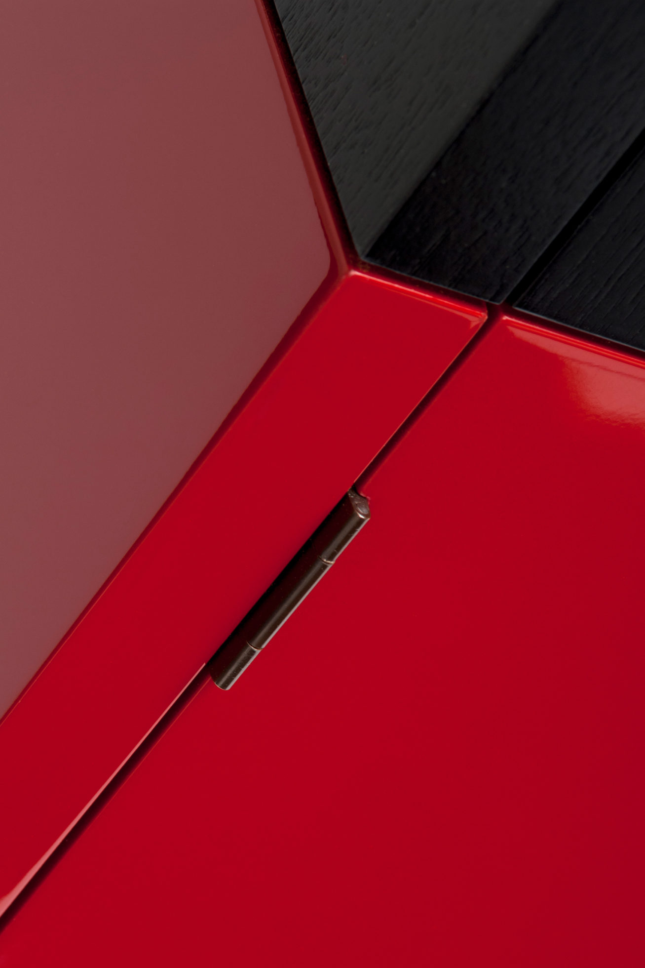美式黑胡桃黑色饮料柜,带多个抽屉和门。 高光红色和绿色漆,白金叶和黄铜色的细节。 内置橱柜门定制手柄和实心黄铜铰链。 最好的杂技橱柜制作。