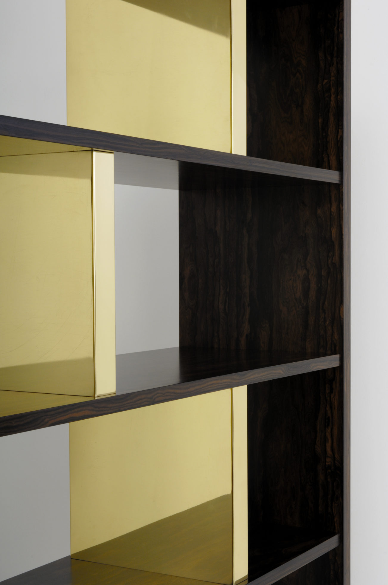 这里展示了戏剧性的Zirocote单板,抛光黄铜立柱和底座。 海伦小姐可以选择金属饰面,贴面,油漆颜色和各种尺寸。