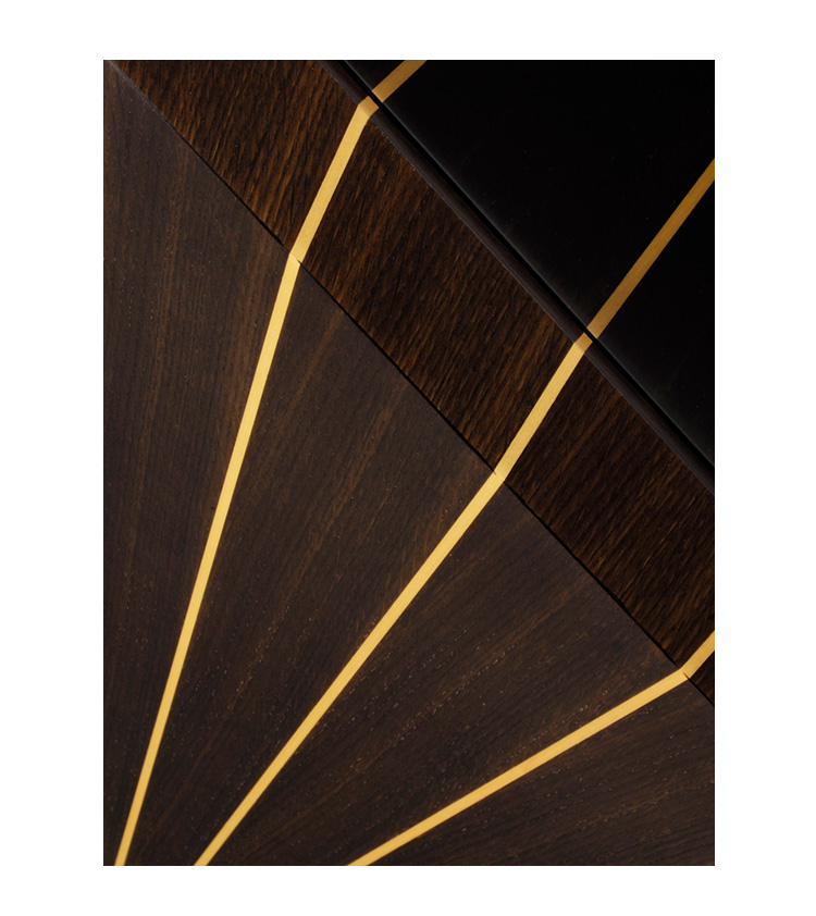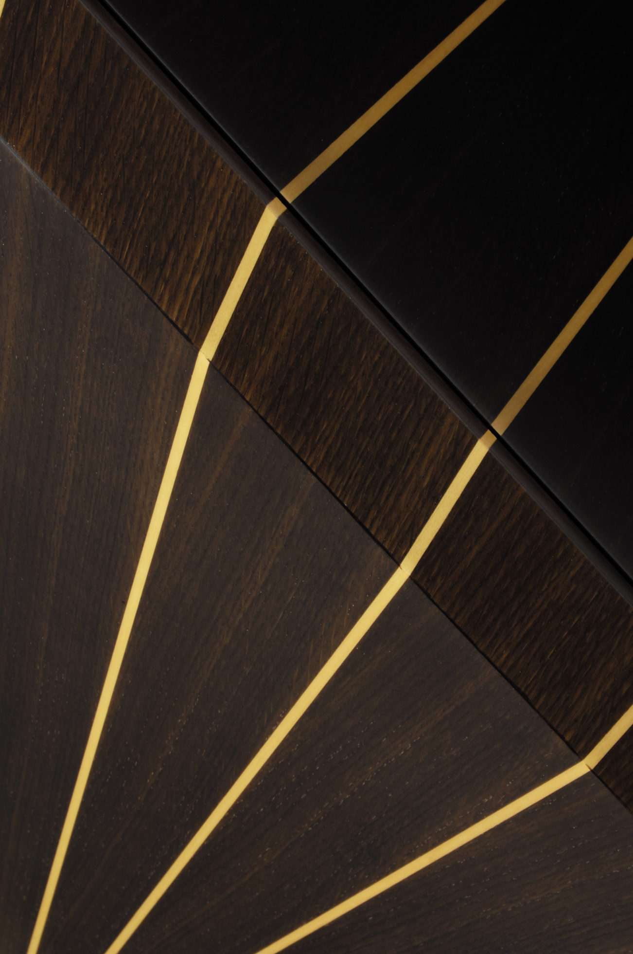 这是一个天体中心件,超新星内阁带有可调节搁板。 内部可以指定为衣柜,酒吧或其他用途。 其他木材和金属饰面可供选择。