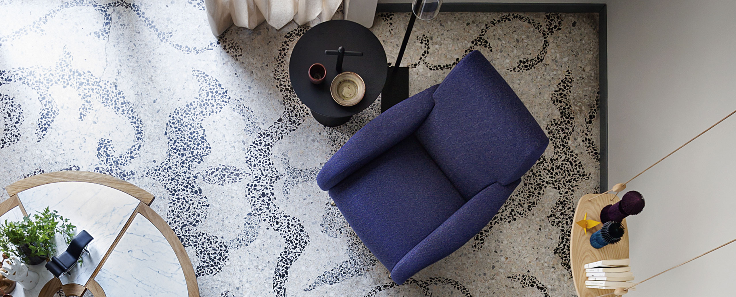 内部座椅和靠背采用钢框架,扶手采用杨木胶合板的扶手椅。无CFC聚氨酯海绵和喷胶棉填充。依据人体施加压力所需的支撑使用不同密度填充座椅、靠背和扶手。三种不同颜色/饰面的钢底座可选:无光泽的玄武岩饰面、镀铬铜和黑铬。使用不可拆卸的布艺面料或皮革软包。椅脚由黑色塑料材料制成。还有黑白格子花纹软包和无光泽的玄武岩底座的经典版。