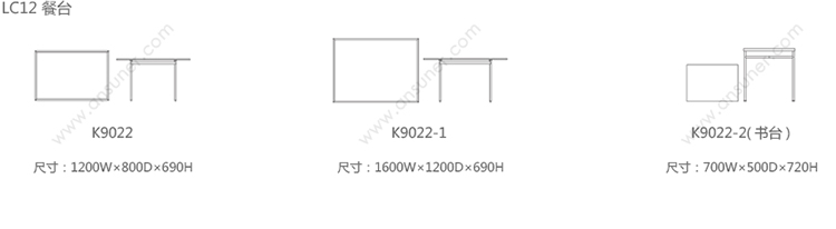 LC12 Table 系列尺寸/示意图