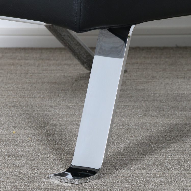 采用抛光镀铬或浮雕外饰黑色钢架的座椅。座垫松软,采用可拆换垫套,填充聚氨酯纤维和喷胶棉。
