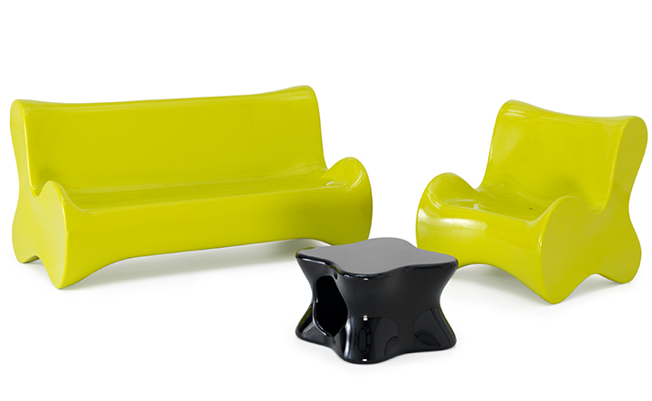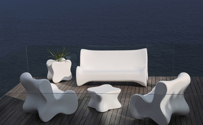 Karim Rashid,当代最耀眼, 最多杰出作品的美国设计师,为西班牙VONDOM品牌设计了50个方案的作品,最终,它们归在6个系列。在这6个系列中,最突出的是DOUX系列, 一个器官造形的,友善的,色彩奔纷的。。。手绘出来的自然形状让你想触摸它,坐在它上面,享受它。 多功能性和未来感是这个系列最突出的元素。DOUX的桌子是多功能的 - 当躺下时,它是一张桌子,在中间的位置有一个孔,可以储存东西;当站立时,它变成了一个优雅的花器或一个可以放香 槟或酒的冰桶。
