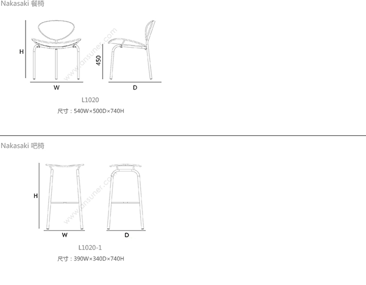 Nakasaki 餐椅 系列尺寸/示意图