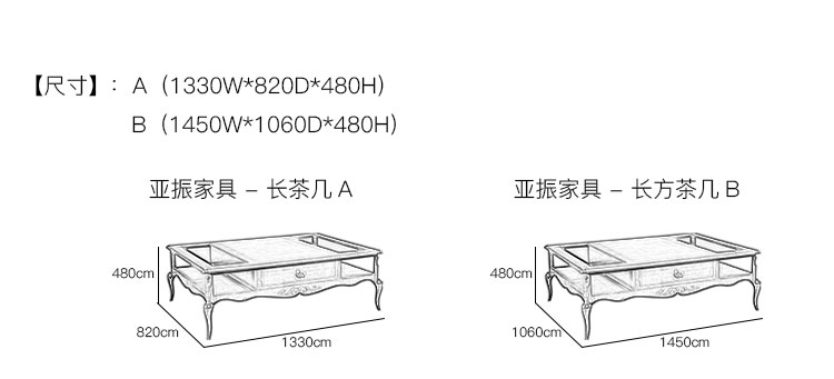 亚振家具 - 长茶几 产品尺寸/示意图