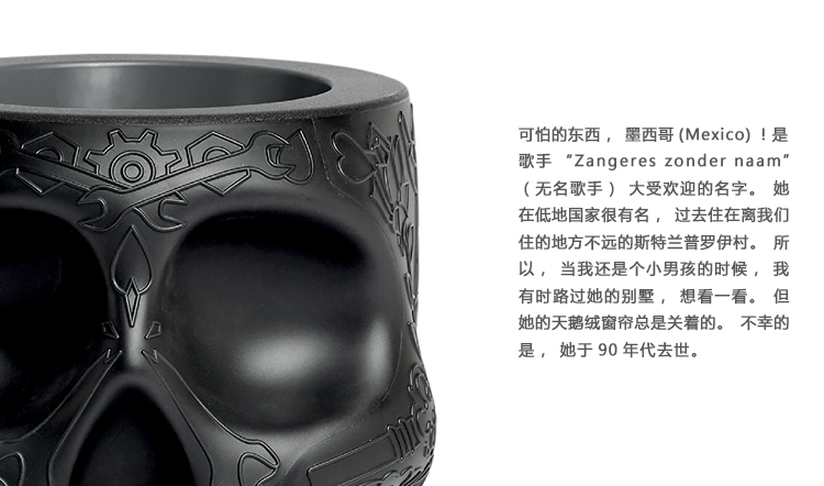 可怕的东西,墨西哥(Mexico)!是歌手“Zangeres zonder naam”(无名歌手)大受欢迎的名字。她在低地国家很有名,过去住在离我们住的地方不远的Stramproy(斯特兰普罗伊)村。所以,当我还是个小男孩的时候,我有时路过她的别墅,想看一看。但她的天鹅绒窗帘总是关着的。不幸的是,她于90年代去世。