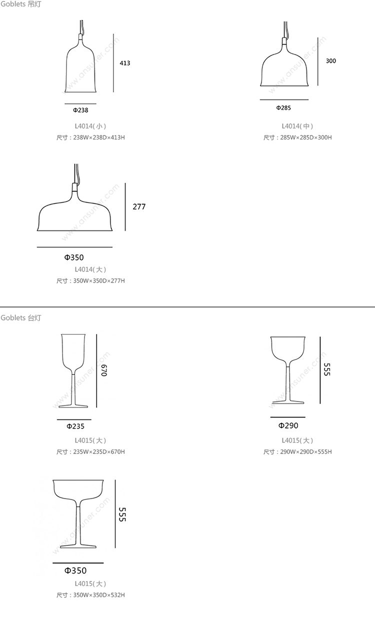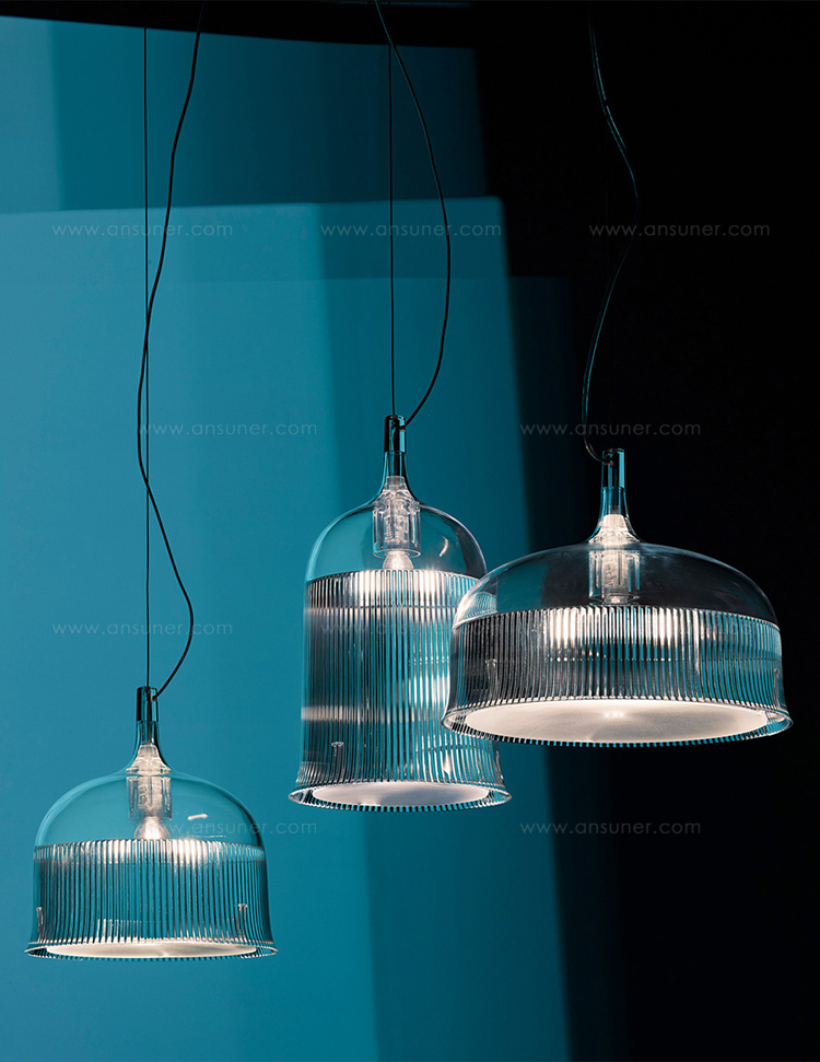 这款经典的水晶玻璃从原来的比例中拿出来,变成了三种不同形状的台灯,类似于香槟长笛、高脚杯和圣杯。