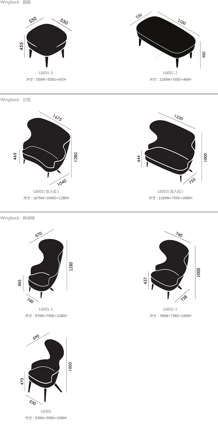 Wingback 矮凳 系列尺寸/示意图