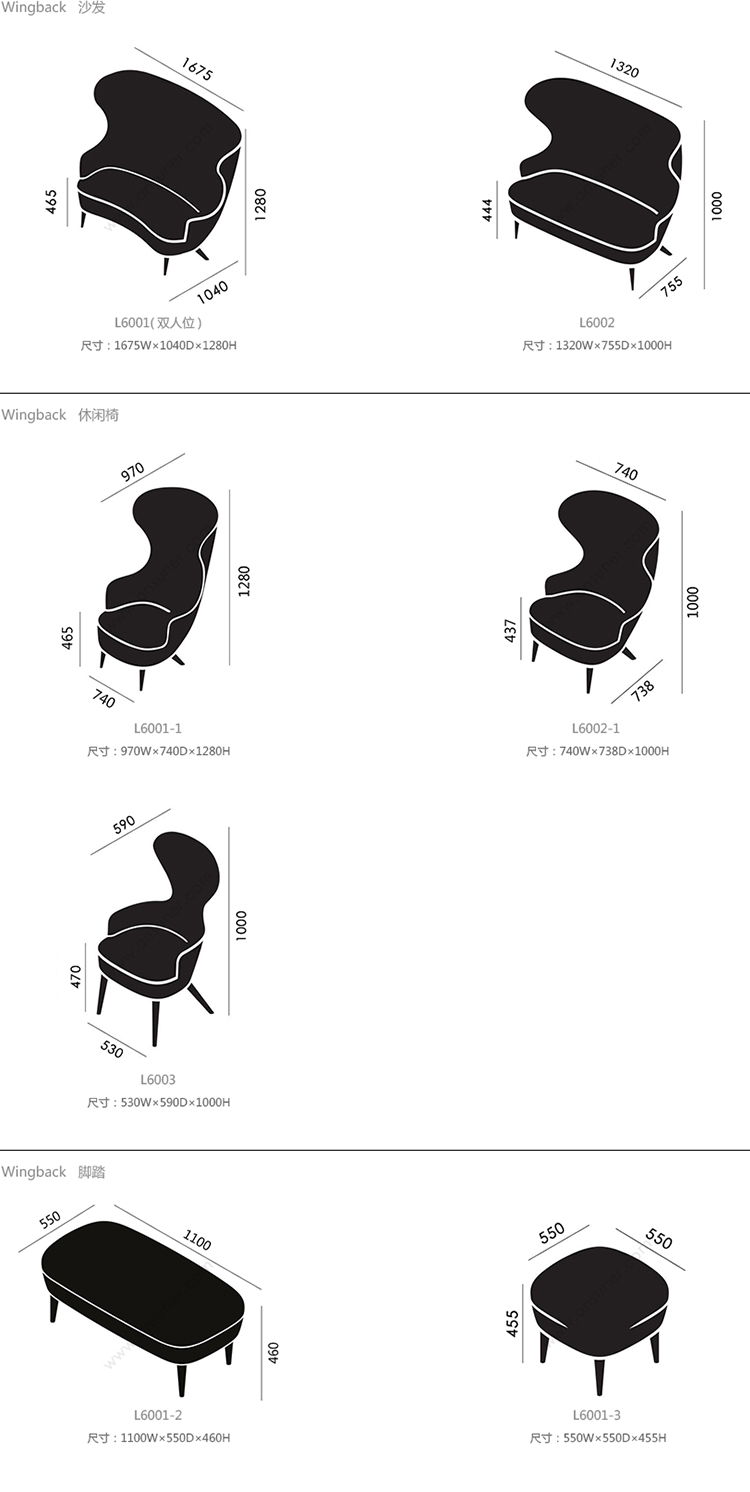 Wingback 沙发 系列尺寸/示意图