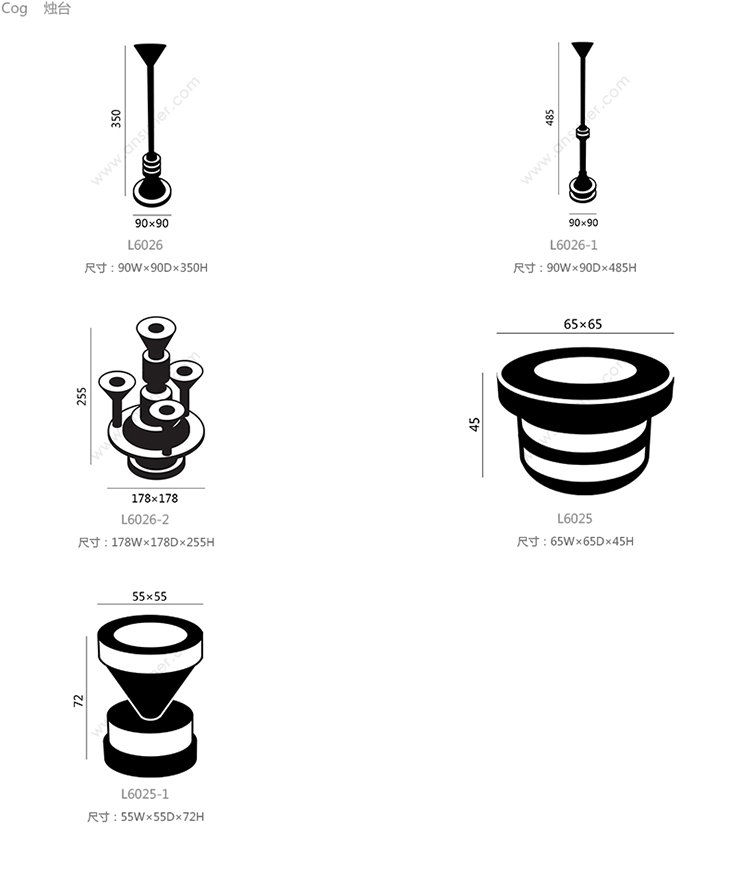 Cog 烛台 系列尺寸/示意图