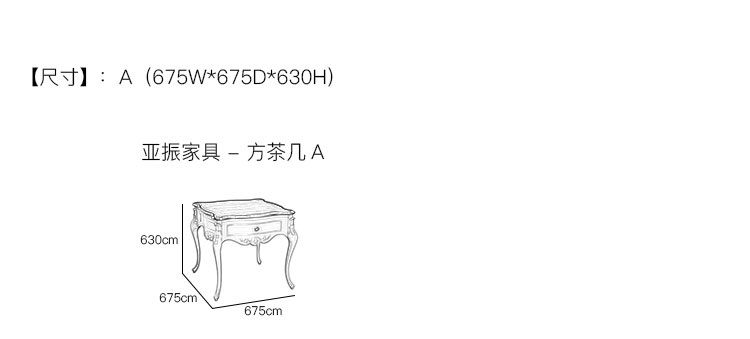 亚振家具 - 方茶几 产品尺寸/示意图