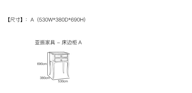 亚振家具 - 床边柜 产品尺寸/示意图