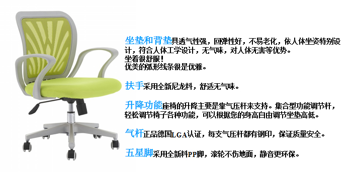 3 坐垫:采用高弹性环保定型海绵,长久使用不变形,且设计符合人体工程学理念,扪透气布,弹性好。