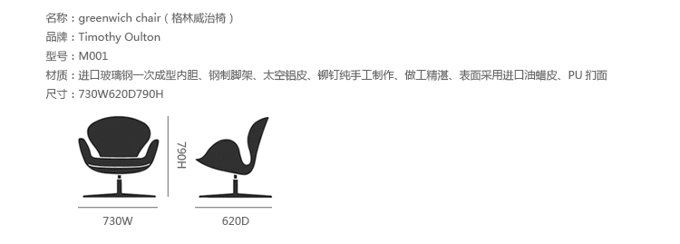 "慵懒、我行我素、精致、时尚,还有那么点怀旧的味道,Timothy Oulton家居的产品就是用这些无可替代的特点,征服了各国的英伦家具爱好者们。Greenwich Chair(格林威治椅)是Timothy Oulton的经典作品之一,椅子的靠手用铆接铝板制造,弧形线条符合空气动力学,有如一双机翼,座垫和靠背则使用柔软仿古皮革制造,好像飞行员夹克。