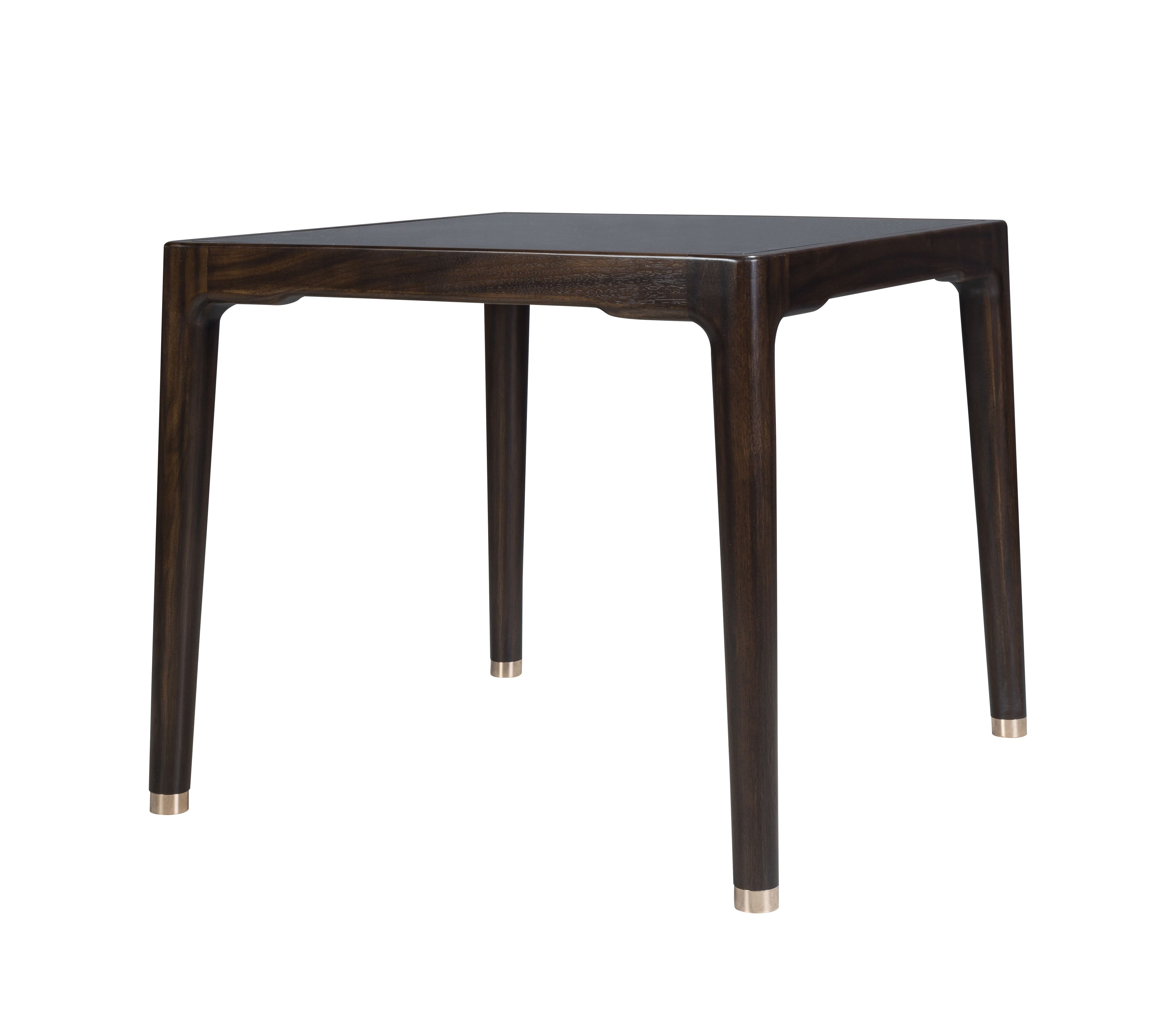 1.造型简洁精巧,以线为主,搭配茶色玻璃桌面,融入传统中式罗锅枨元素,通透灵动。 2.腿部内收,上收下分,具有很好的视觉稳定感,稳重大方。 3.铜脚设计,赋予中式韵味的同时以防磨损。
