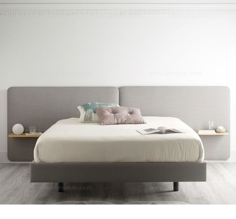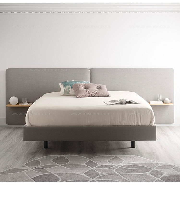 不同宽度和高度的圆形嵌板,不同颜色的织物组合,浮动的书架和有抽屉的床头柜:用Lota系列为你的卧室增添你的个人风格。