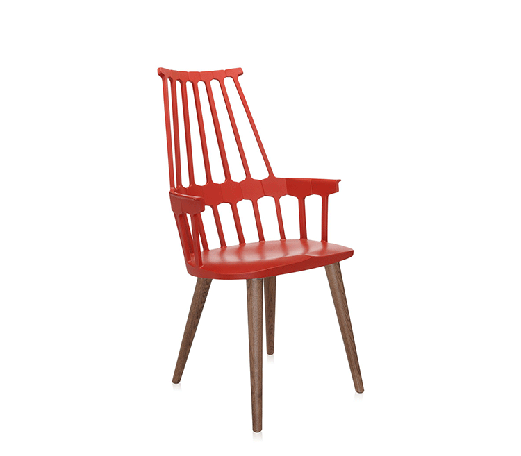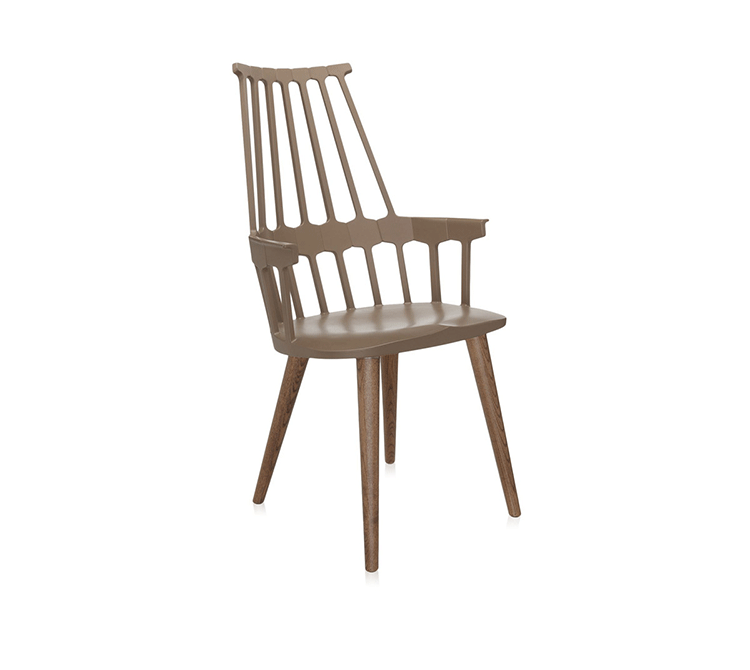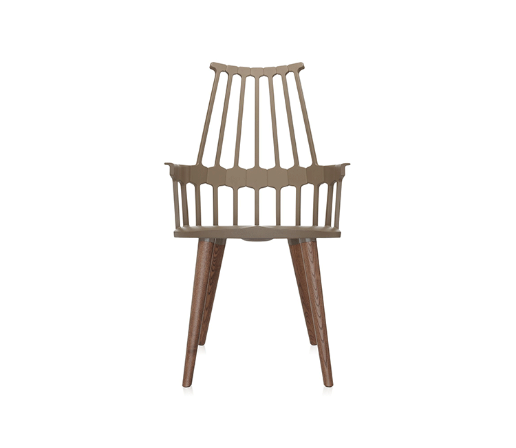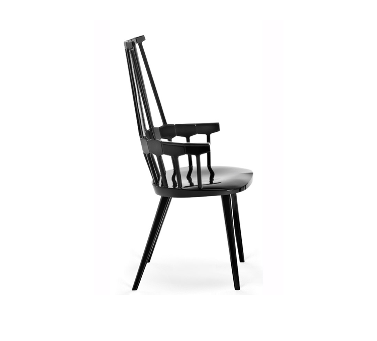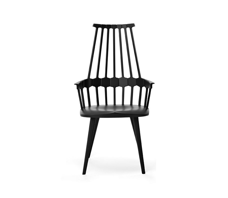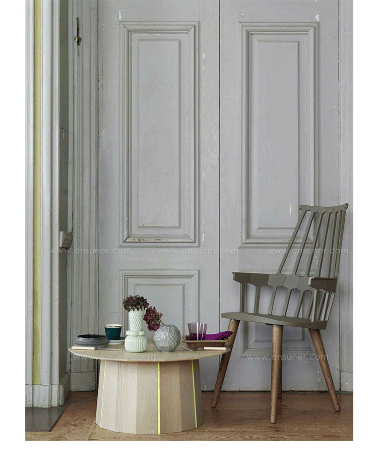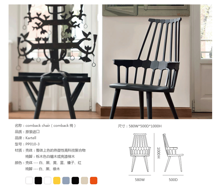 温莎风格椅被冠以乡村风格,但并非一成不变,在不同时期不同阶段又融入新的设计元素。Kartell的这款产品再一次享受重现经典的设计快乐,国际知名家居设计师Patricia Urquiola为温莎椅(Windsor Chair)打造了一个这款新的造型。回归十八世纪英格兰的辉煌时期“梳背”椅的特点,整个框架用亚光材质,靠背的7个分支结构朝着椅腰部位向下延伸,在一个加固六角形圆圈处与纤细的轴汇合,与椅座合为一体。聚碳酸酯材质的使用赋予COMBACK一种轻盈的质感和当代风格。浸透在黑色COMBACK梳背椅里的那一分淡定从容,能让人气定神闲,默默却又不留情面地将浮华虚荣隔在门外。因为不存在彩色光谱里,白色可以说并非真正色彩。纯白色Comback Chair梳背椅,唯美得让人难以抗拒。那种与世无争的清雅,好似刚刚落入凡尘的花瓣,昭示宁静与自然。这款Comback Chair 来自意大利的创新品牌Kartell,以发梳为灵感,回归18世纪英式风格,整齐对称的典雅扮相,表现出一份沉稳内敛的韵韵意涵。木质椅角的运用,让复古气息升华其中。配搭塑料椅身的现代风格特色,不愧为一份跨越历史的新时代作品。荣获2011年Wallpaper设计奖殊荣。